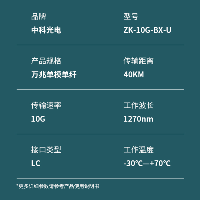 中科光電ZK-10G-BX-U SFP+光模塊萬兆10G單模單纖光纖模塊(1270nm,40km,LC)A適配華為交換機