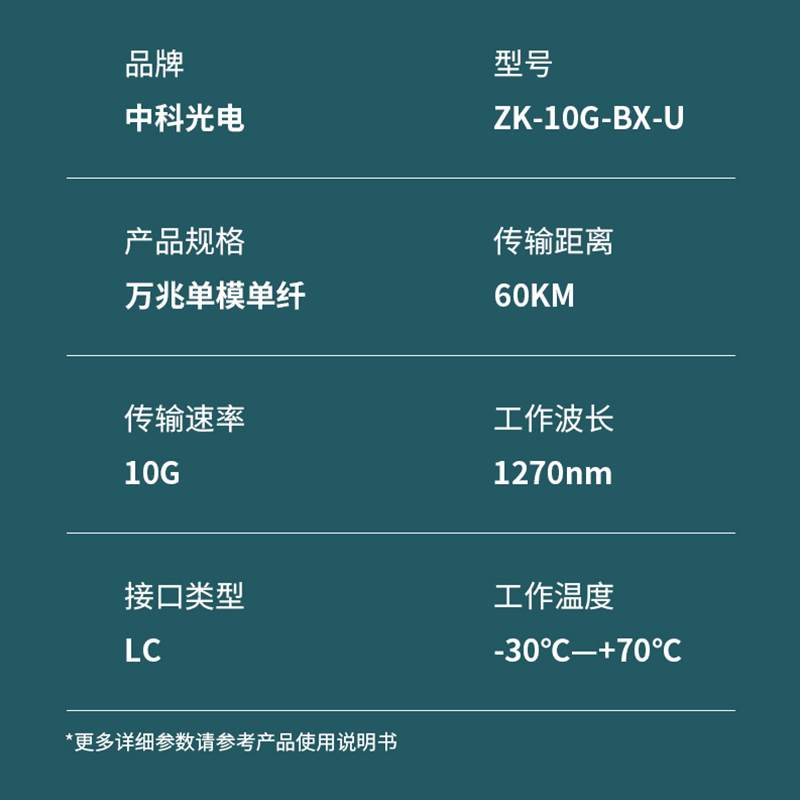 中科光電ZK-10G-BX-U SFP+光模塊萬兆10G單模單纖光纖模塊(1270nm,60km,LC)A適配華為交換機(jī)