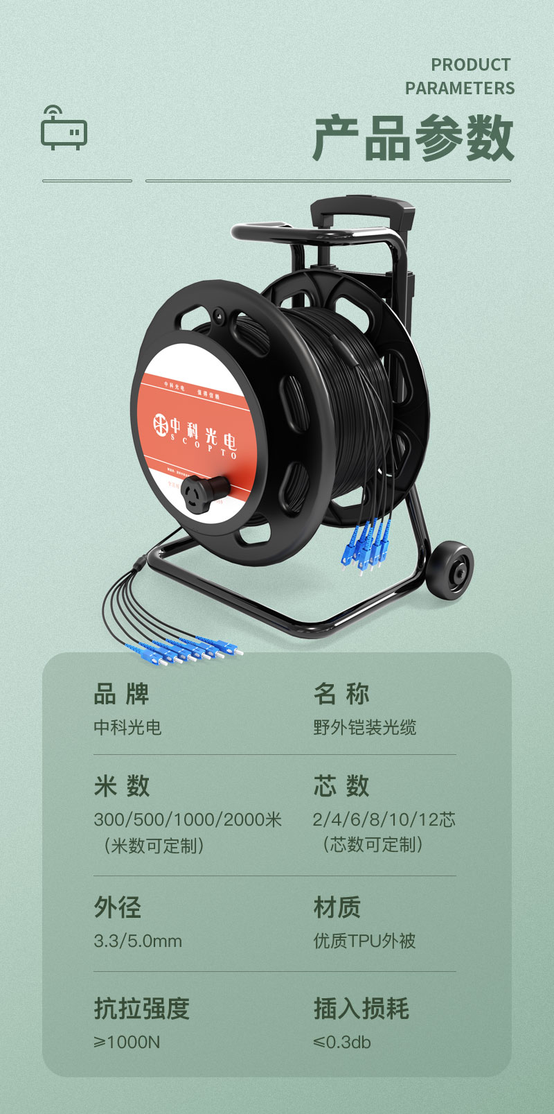 中科光電 單模六芯室外TPU野戰(zhàn)光纜 鎧裝防水基站通信野外拉練搶修  500米+放纜車+LC接口