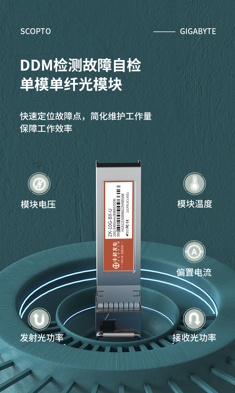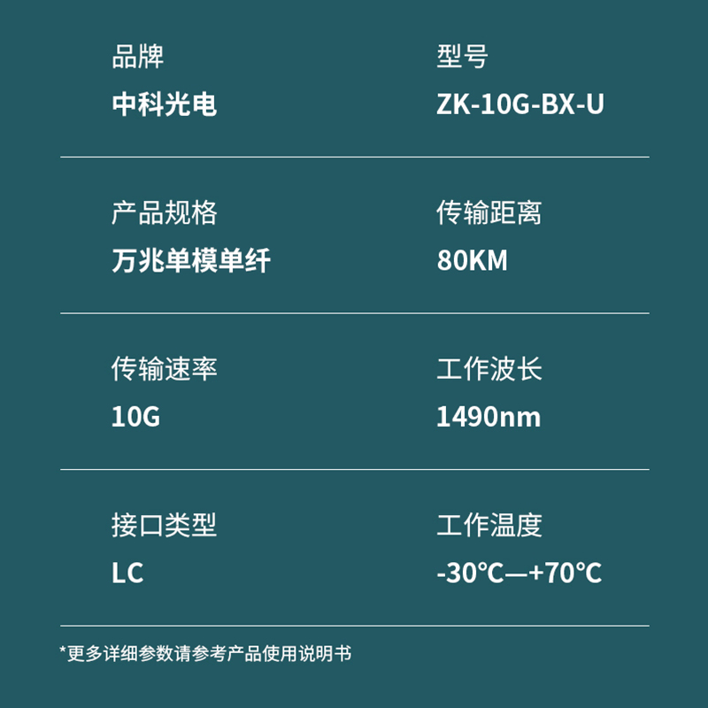 中科光電ZK-10G-BX-U SFP+光模塊萬兆10G單模單纖光纖模塊(1490nm,80km,LC)A適配華為交換機(jī)