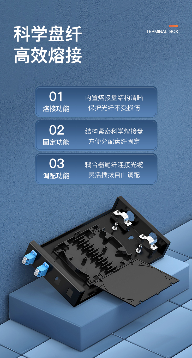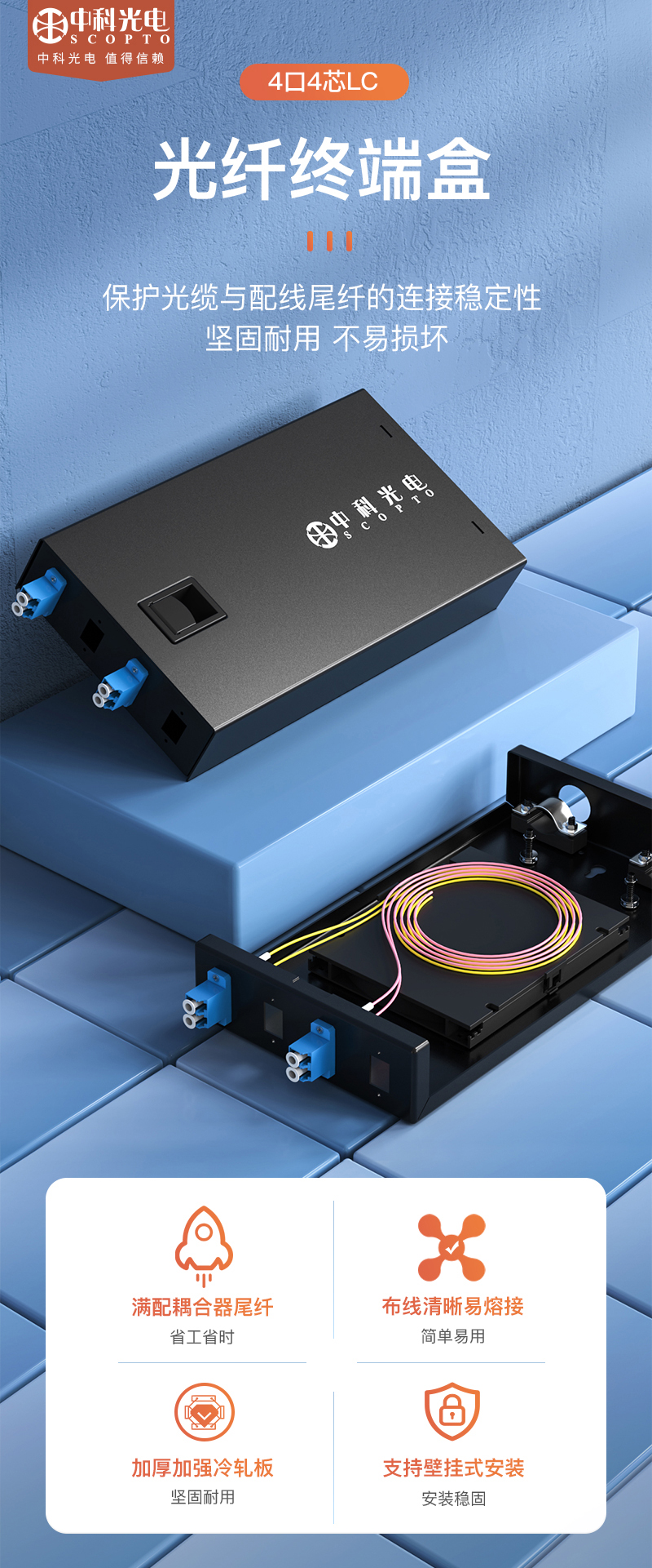 中科光電 光纖終端盒4口 4芯光纖熔接盒 光纜接續(xù)盒 接線熔纖盒 LC單模滿配尾纖法蘭 壁掛式 ZK-GXH-4LC-SM