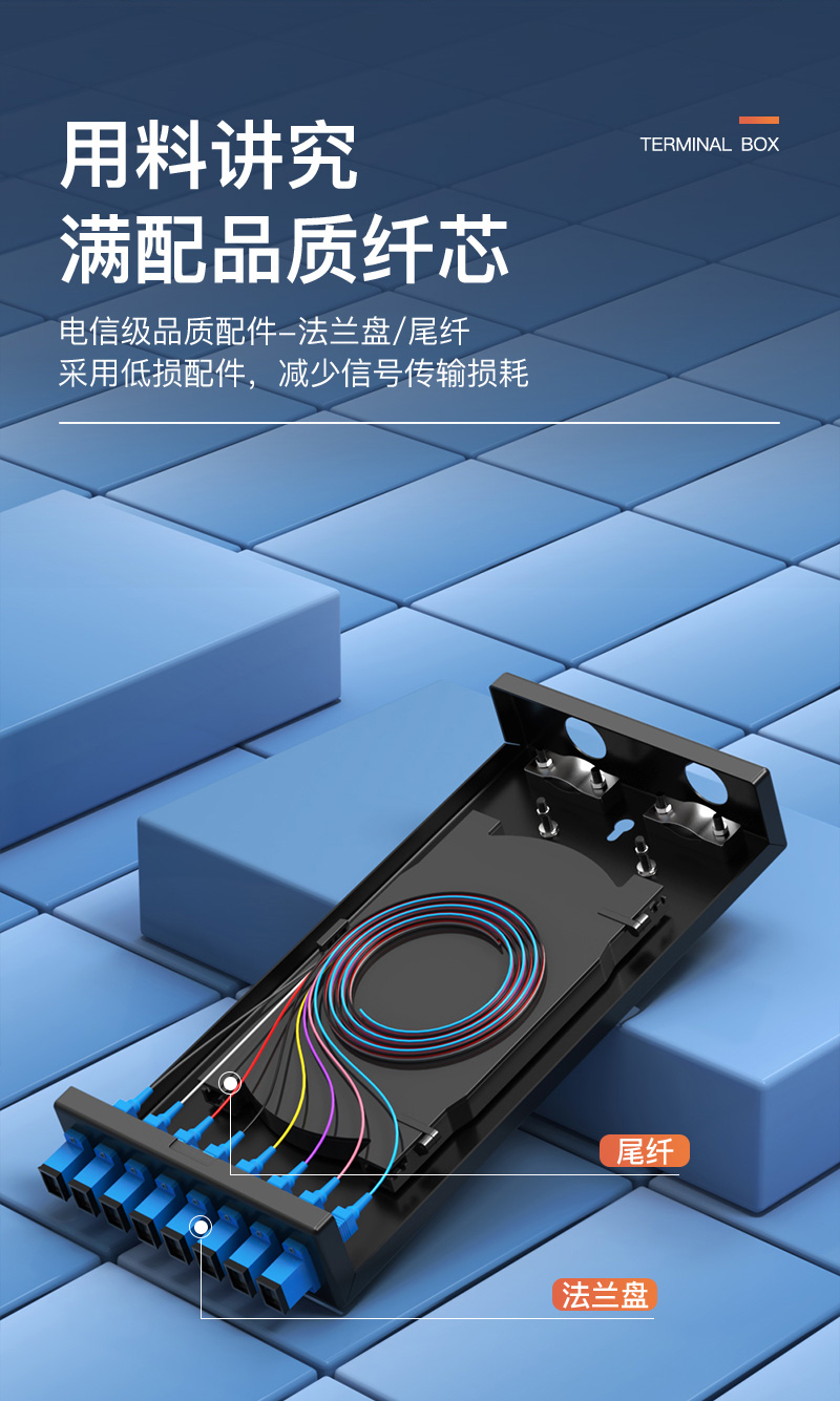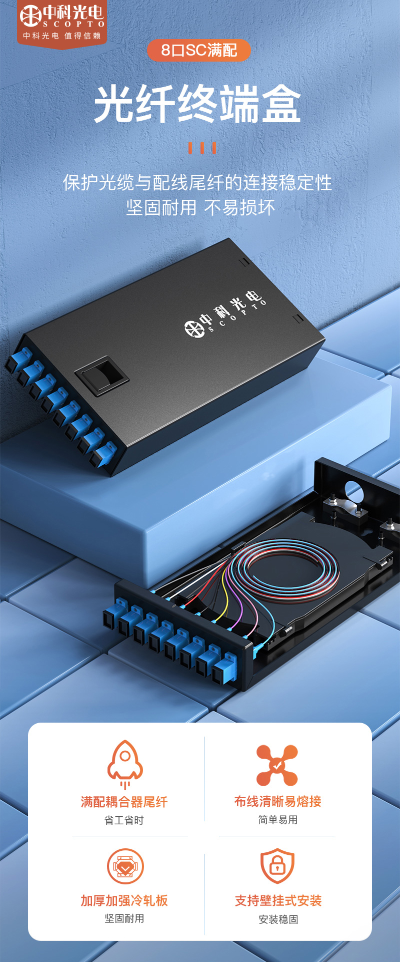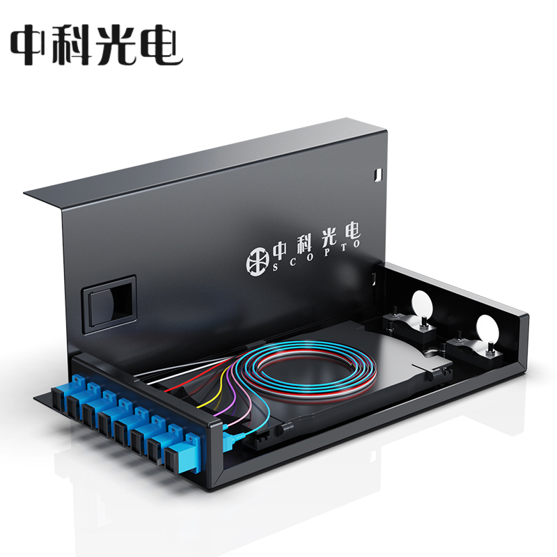 中科光電 光纖終端盒8口 8芯光纖熔接盒 光纜接續(xù)盒 接線熔纖盒 SC多模滿配尾纖法蘭 壁掛式 ZK-GXH-8SC-MM