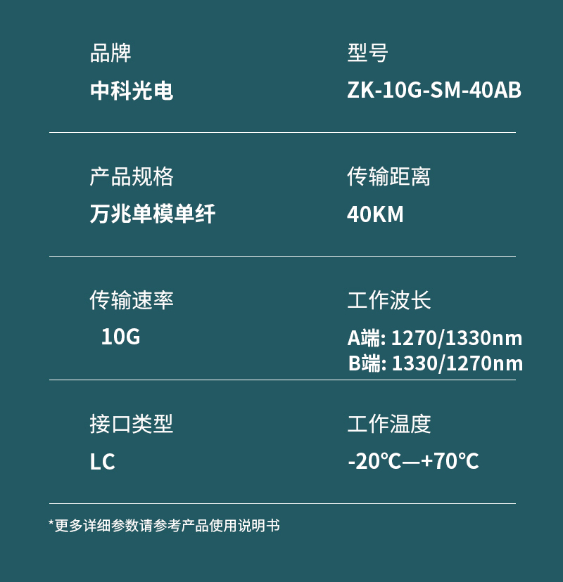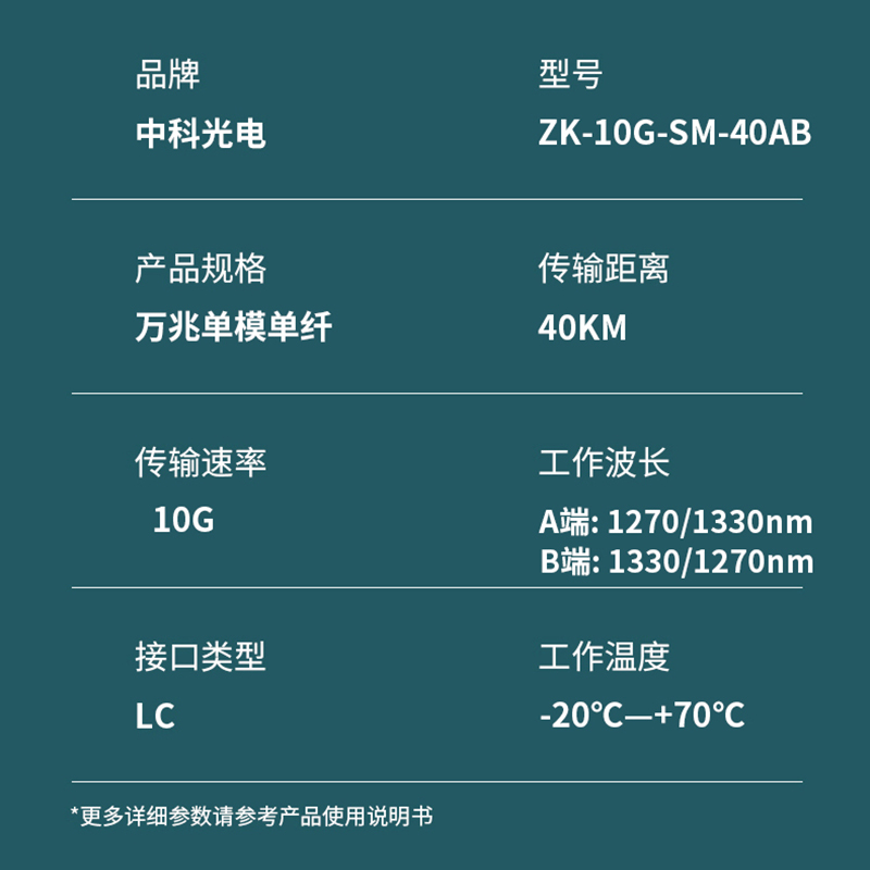 中科光電 萬兆光模塊 10G光纖模塊萬兆單模光模塊SFP+單模單纖1270/1330nm,40KM,LC接口 一對(duì) ZK-10G-SM-40AB