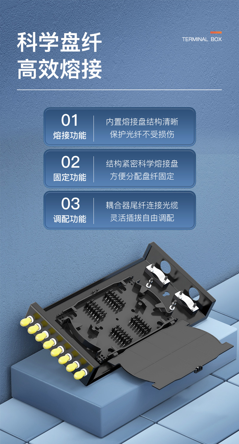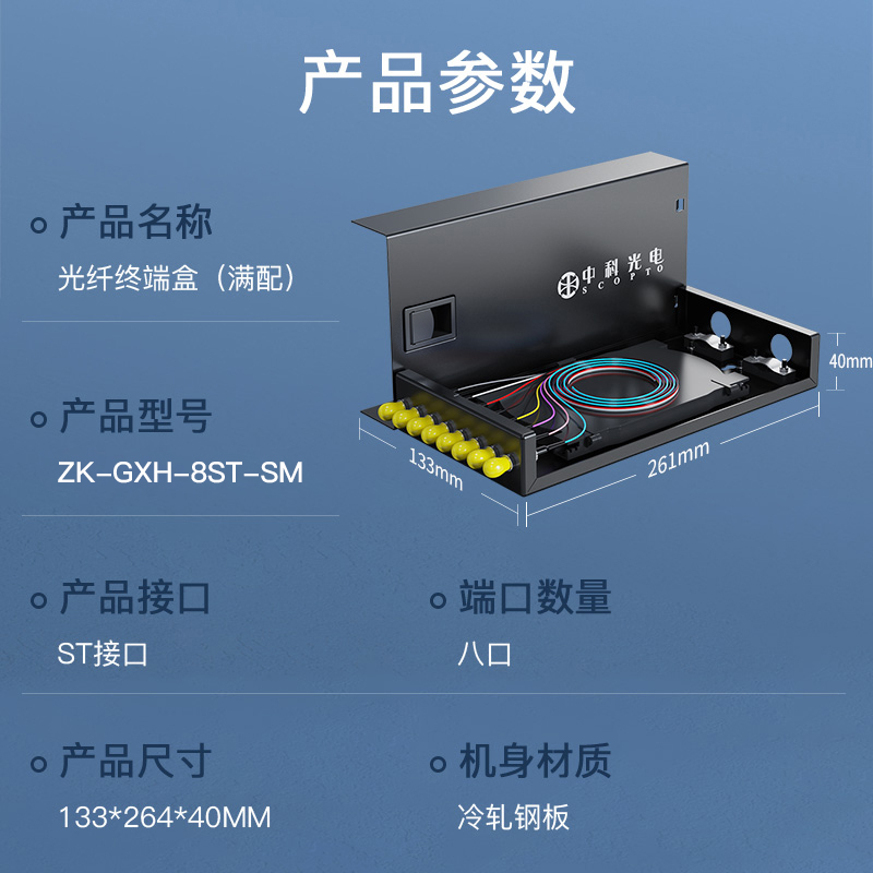 中科光電 光纖終端盒8口 8芯光纖熔接盒 光纜接續(xù)盒 接線熔纖盒ST單模滿配尾纖法蘭 壁掛式 ZK-GXH-8LC-ST