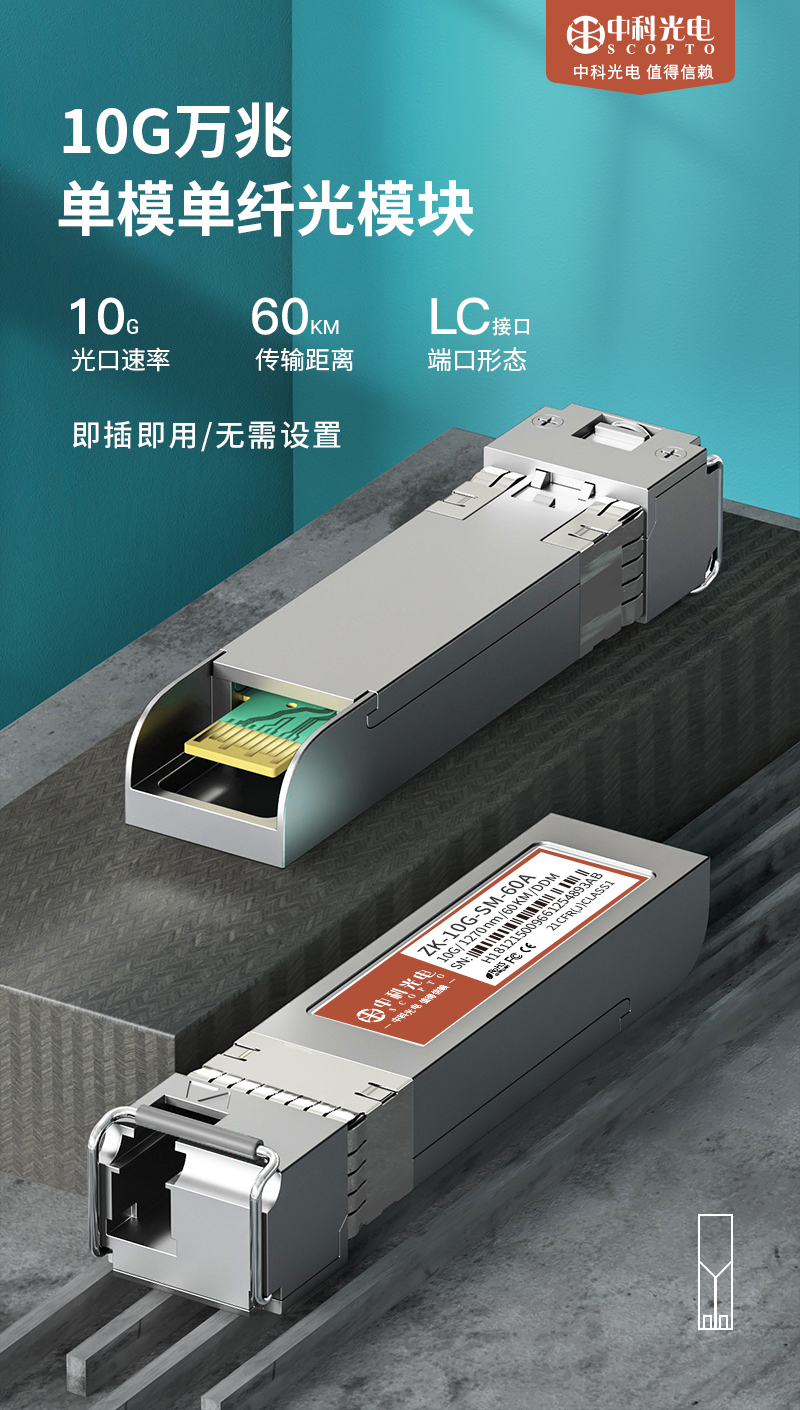 中科光電 萬兆光模塊 10G光纖模塊萬兆單模光模塊SFP+單模單纖1270/1330nm,60KM,LC接口 一對 ZK-10G-SM-60AB