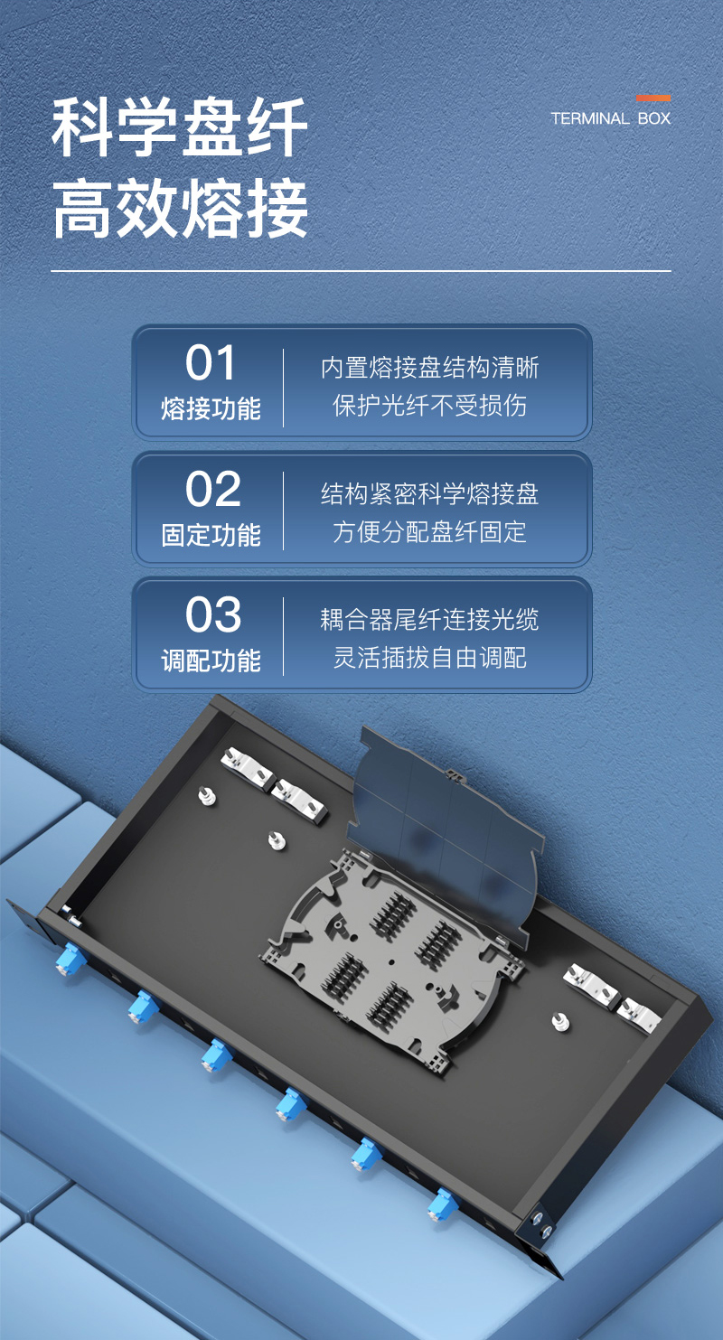 中科光電 光纖終端盒12口 12芯光纖配線架 光纜接續(xù)盒接線熔纖盒 LC多模滿配尾纖法蘭 機(jī)架式 ZK-GXH-12LC-MM