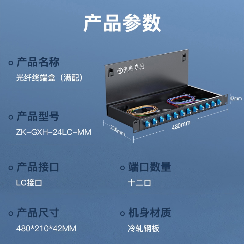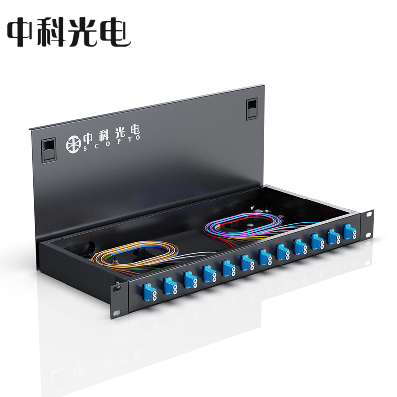 中科光電 光纖終端盒12口 24芯光纖配線架 光纜接續(xù)盒接線熔纖盒 LC多模滿配尾纖法蘭 機架式 ZK-GXH-24LC-MM