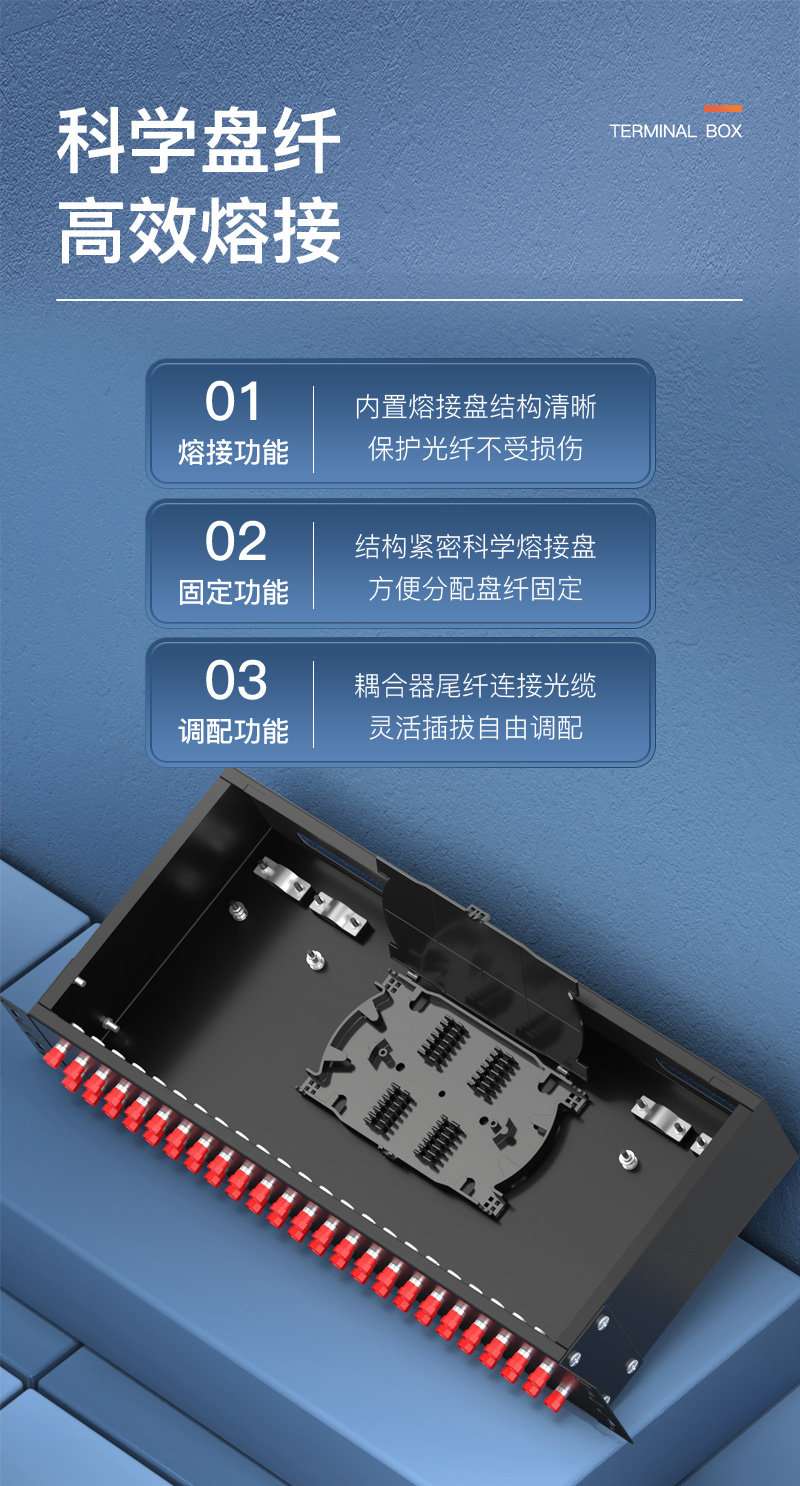 中科光電 光纖終端盒48口 48芯光纖配線架 光纜接續(xù)盒接線熔纖盒 FC單模滿配尾纖法蘭 機(jī)架式 ZK-GXH-48FC-SM