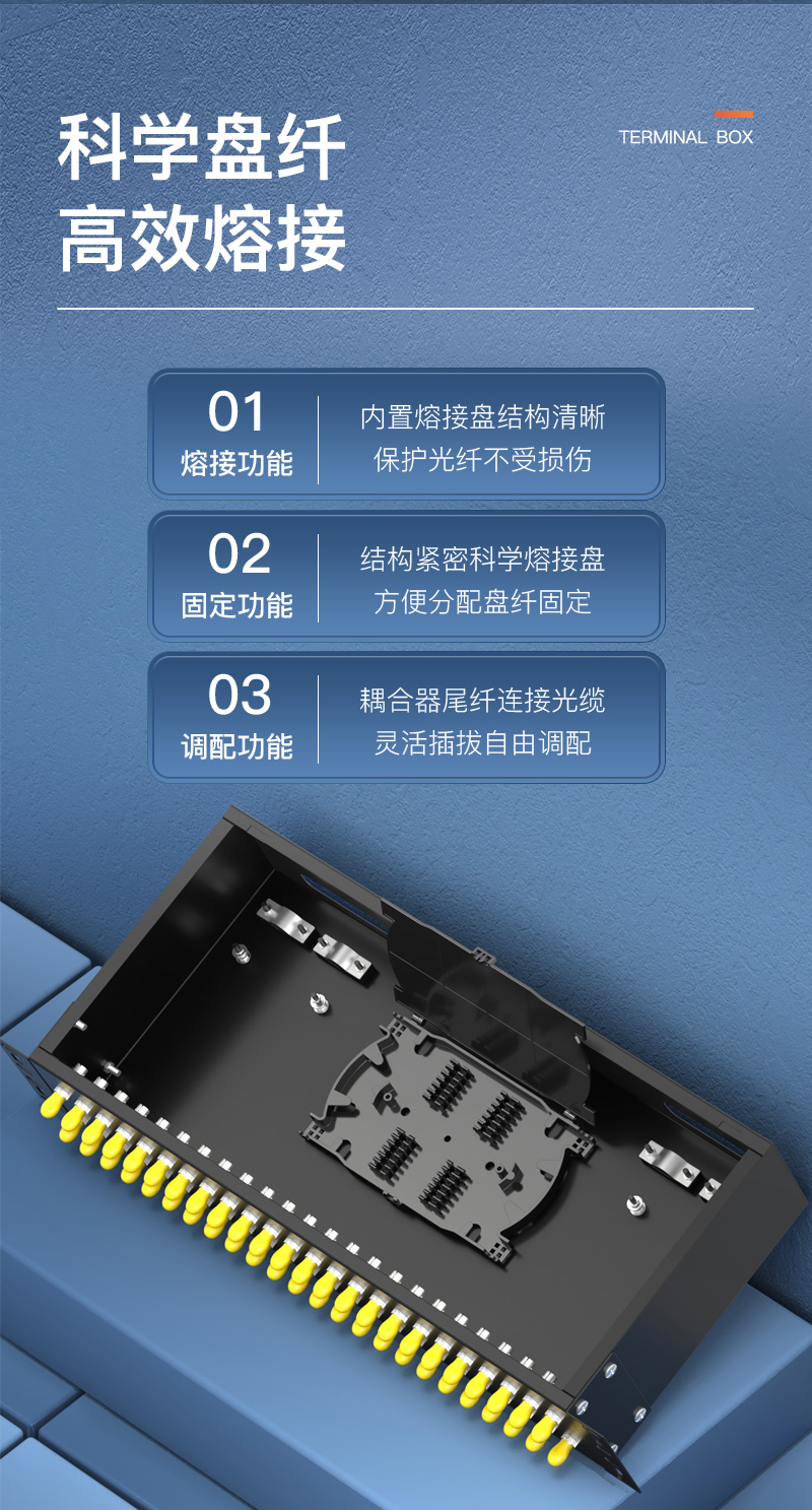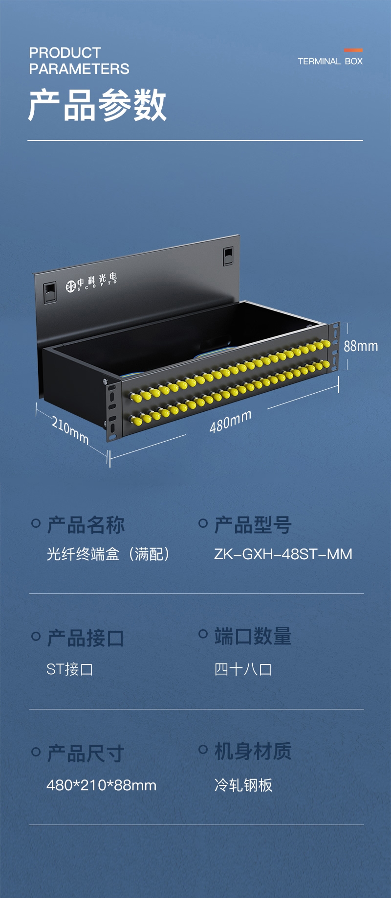 中科光電 光纖終端盒48口 48芯光纖配線架 光纜接續(xù)盒接線熔纖盒 ST多模滿配尾纖法蘭 機架式 ZK-GXH-48ST-MM