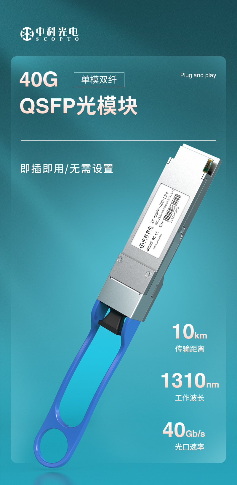 中科光電 ZK-QSFP-40G-LR4 光模塊光纖模塊單模雙纖(1310nm,10KM,LC接口)適用各品牌華為華三思科銳捷交換機(jī)