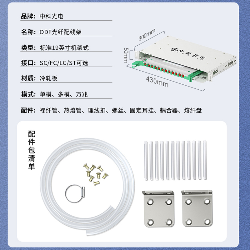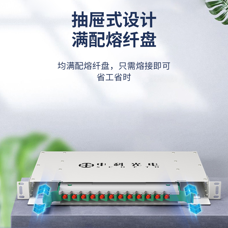 中科光電ZK-ODF-12FC-MM-OM4 12芯ODF光纖配線架FC萬(wàn)兆多模滿配箱 機(jī)架式終端盒子框單元體光纜尾纖熔接盤(pán)