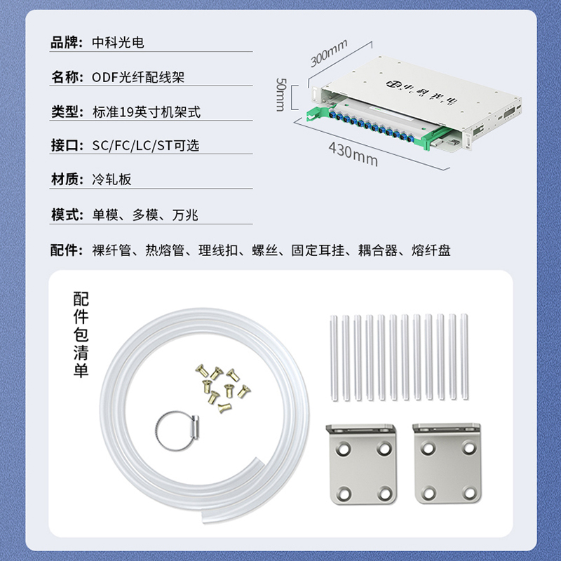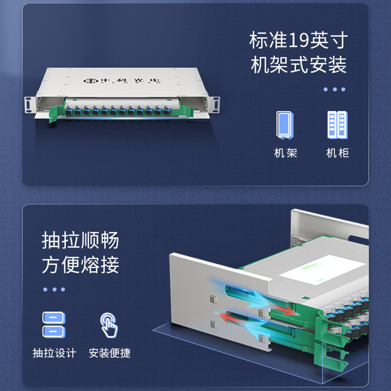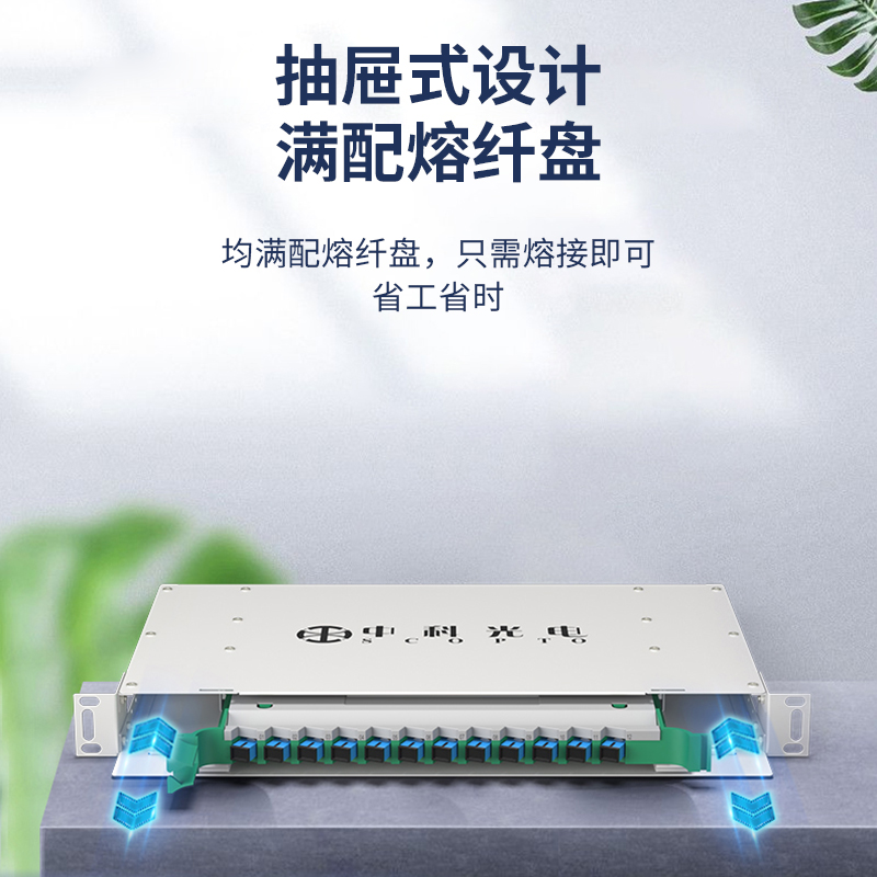 中科光電ZK-ODF-12SC-MM 12芯ODF光纖配線架SC多模滿配箱 19英寸機架式推拉終端盒子框單元體光纜尾纖熔接盤