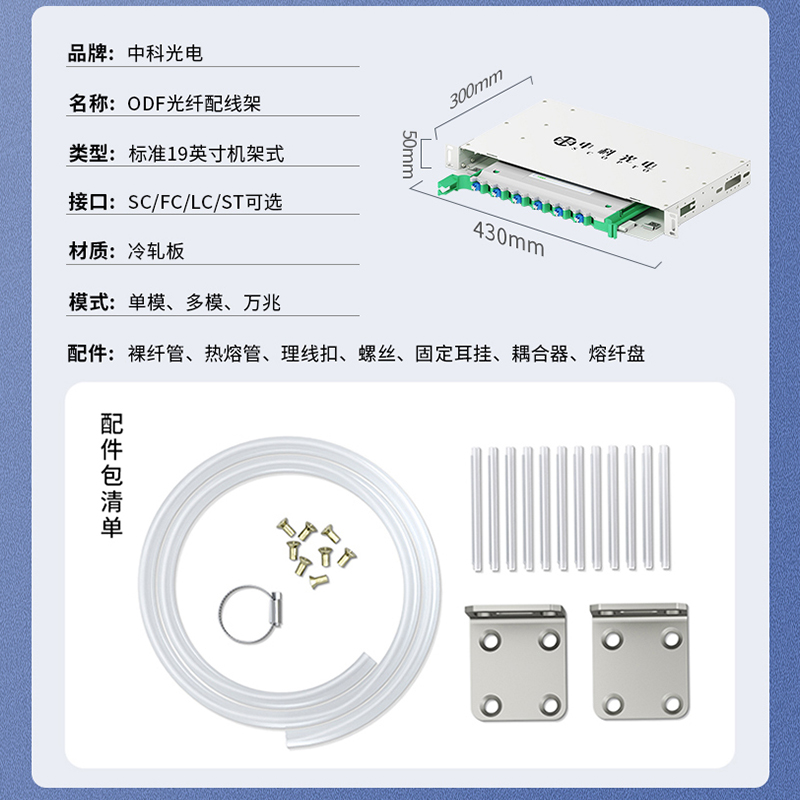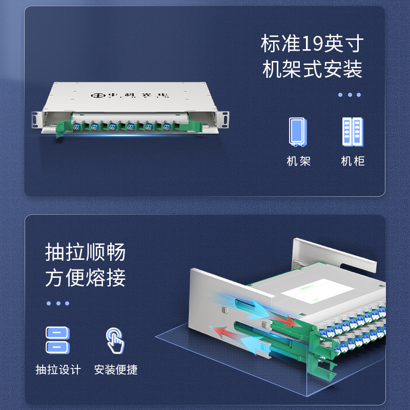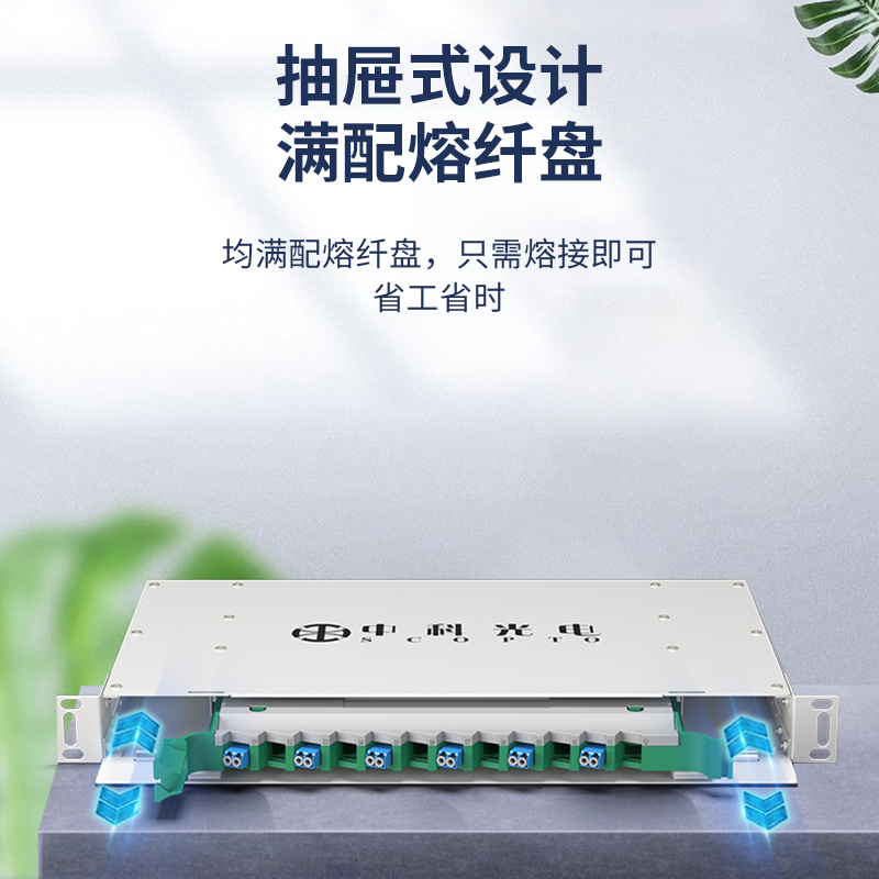中科光電ZK-ODF-12LC-SM 12芯ODF光纖配線架LC單模滿配箱 19英寸機架式推拉終端盒子框單元體光纜尾纖熔接盤