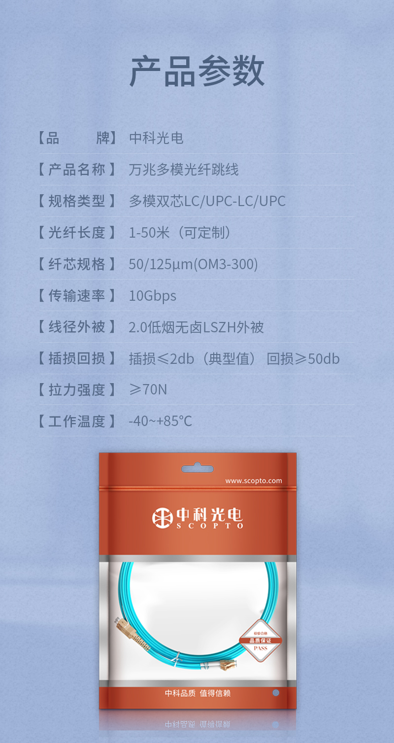 中科光電 萬(wàn)兆多模光纖跳線LC-SC OM3-300雙芯尾纖 低煙無(wú)鹵LSZH抗彎曲跳纖光纖線  長(zhǎng)度可定制