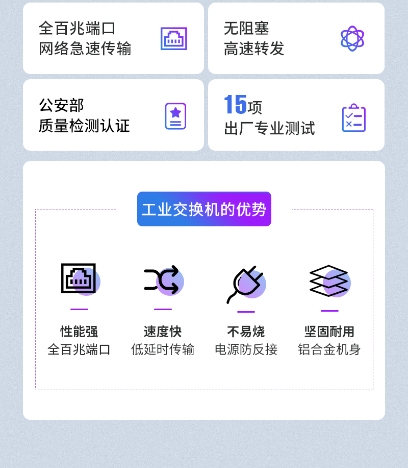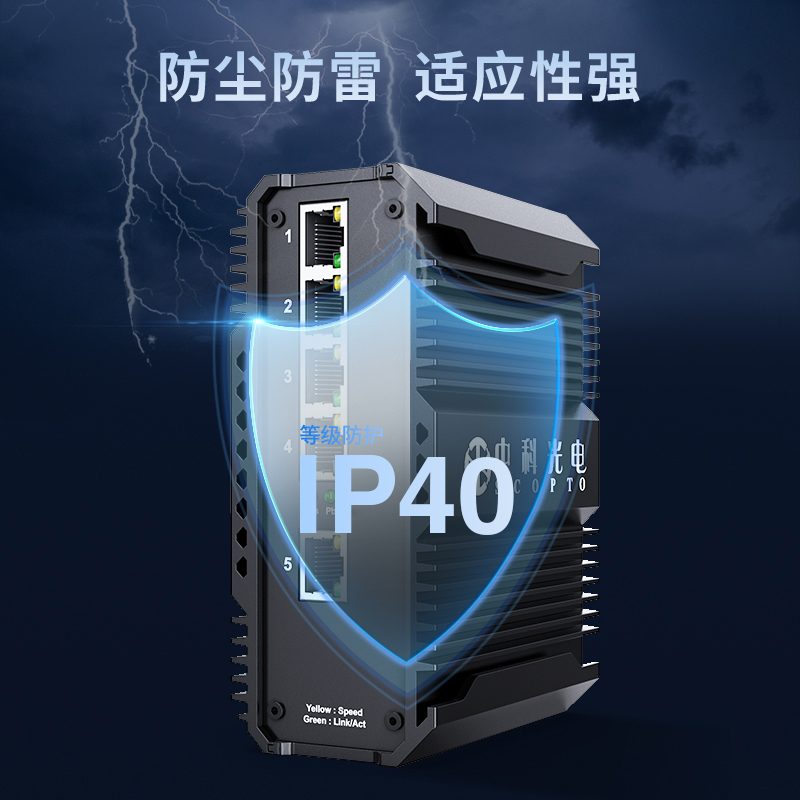 中科光電 工業(yè)級(jí)5口百兆交換機(jī) 安防監(jiān)控工業(yè)以太網(wǎng)交換機(jī) 12V/24V/48V供電導(dǎo)軌壁掛式安裝 ZK-7000-15-5FE