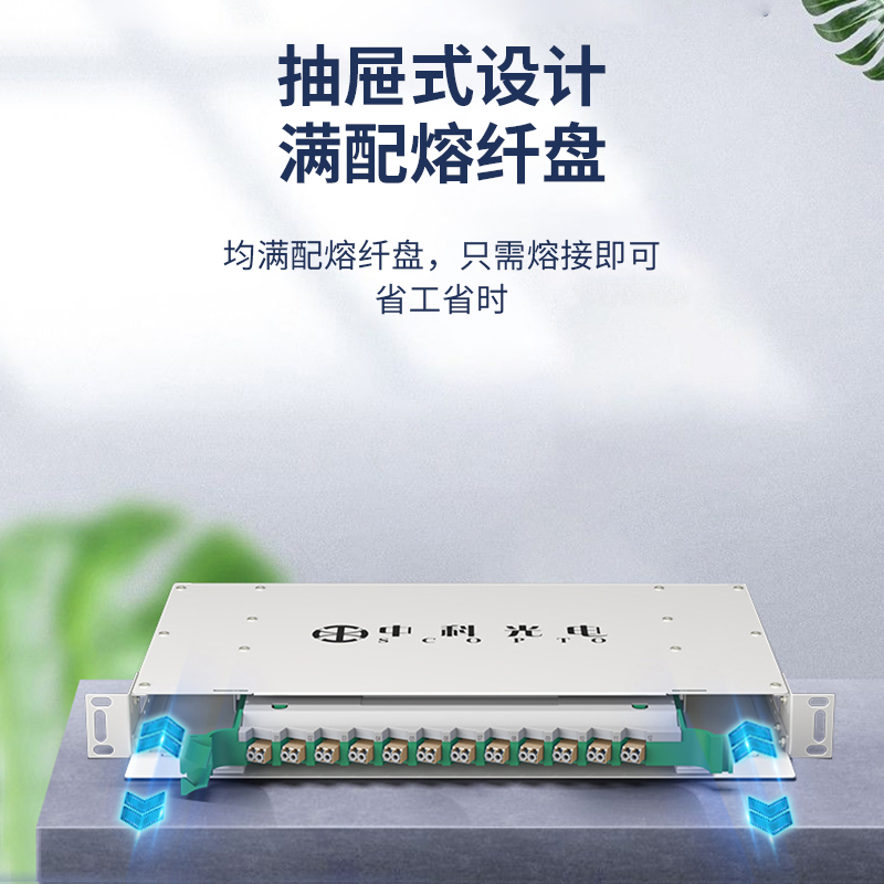 中科光電ZK-ODF-24LC-MM 24芯ODF光纖配線架LC多模滿配箱 19英寸機(jī)架式推拉終端盒子框單元體光纜尾纖熔接盤