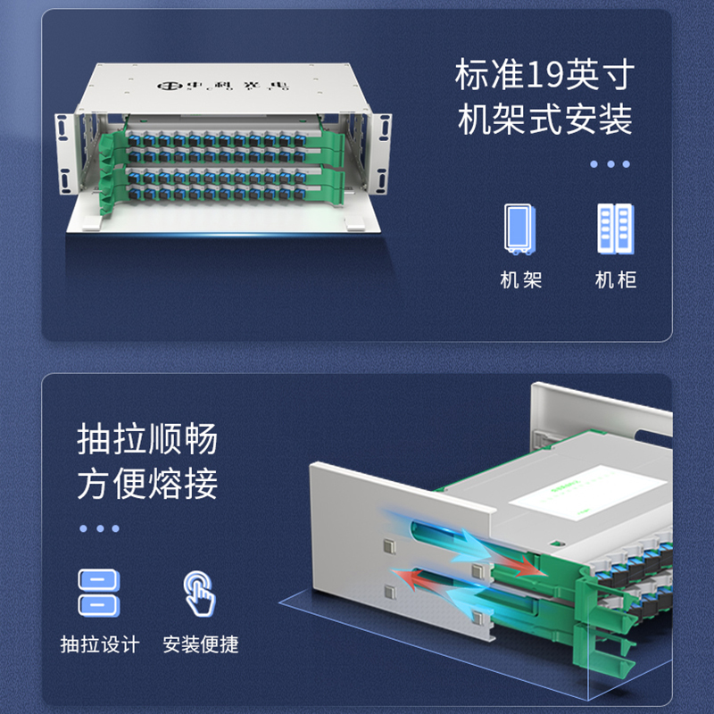 中科光電ZK-ODF-48SC-MM 48芯ODF光纖配線架SC多模滿配箱 19英寸機(jī)架式推拉終端盒子框單元體光纜尾纖熔接盤