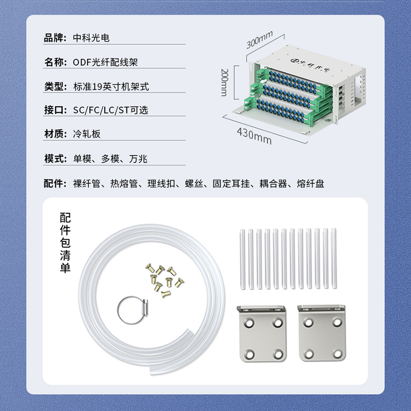 中科光電ZK-ODF-72SC-MM-OM3 72芯ODF光纖配線架SC萬兆多模滿配箱 機(jī)架式終端盒子框單元體光纜尾纖熔接盤