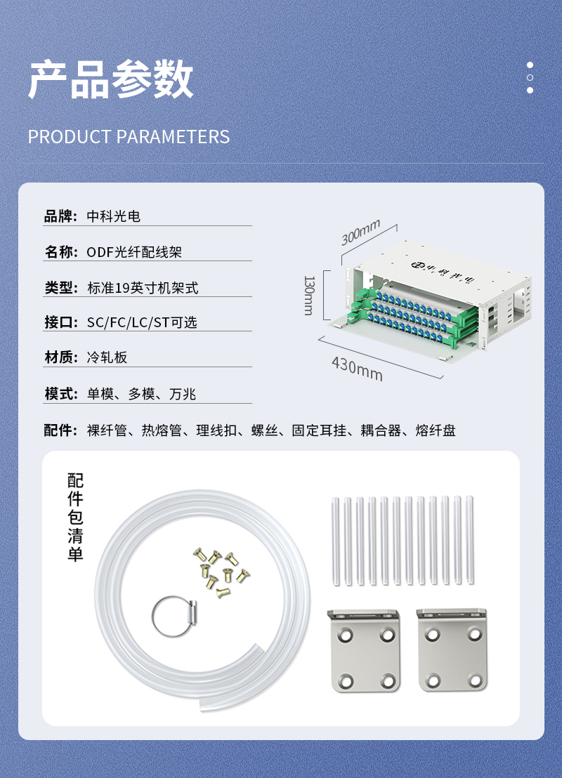 中科光電ZK-ODF-72LC-SM 72芯ODF光纖配線架LC單模滿配箱 19英寸機(jī)架式推拉終端盒子框單元體光纜尾纖熔接盤