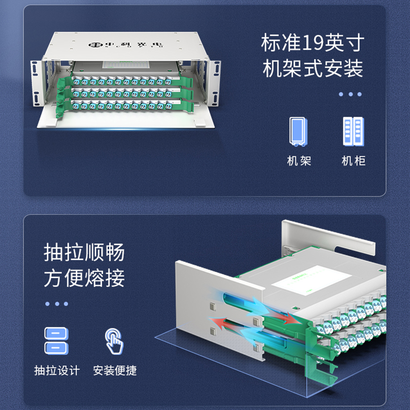 中科光電ZK-ODF-72LC-MM-OM4 72芯ODF光纖配線架LC萬兆多模滿配箱 機(jī)架式終端盒子框單元體光纜尾纖熔接盤