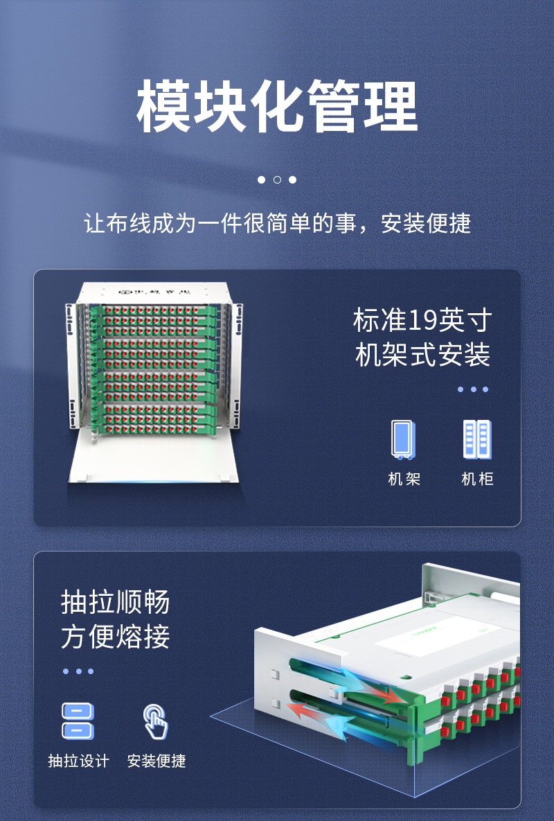 中科光電ZK-ODF-144FC-MM-OM4 144芯ODF光纖配線架FC萬兆多模滿配箱 機(jī)架式終端盒子框單元體光纜尾纖熔接盤