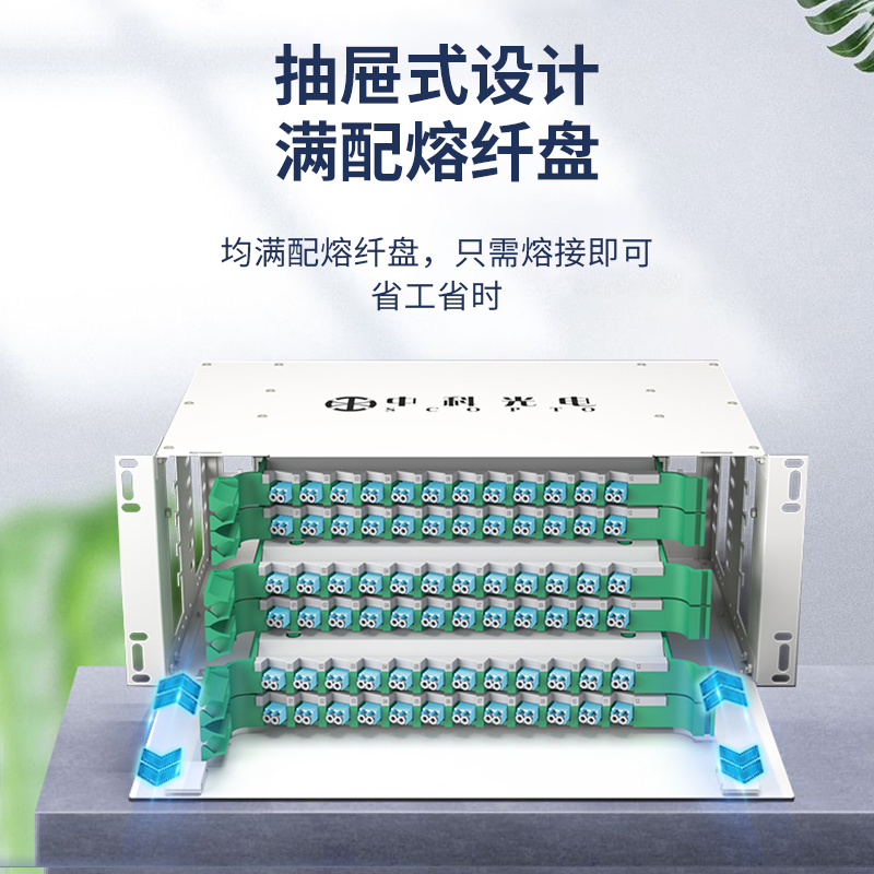中科光電ZK-ODF-144LC-MM-OM3 144芯ODF光纖配線架LC萬兆多模滿配箱 機架式終端盒子框單元體光纜尾纖熔接盤