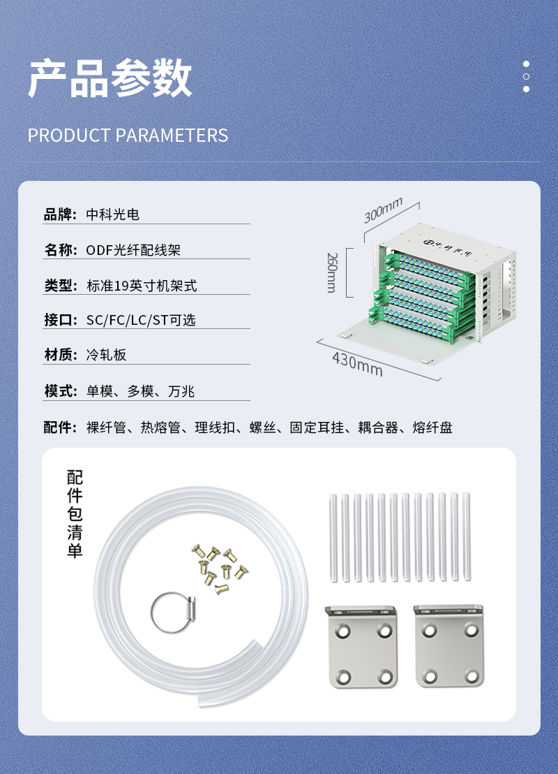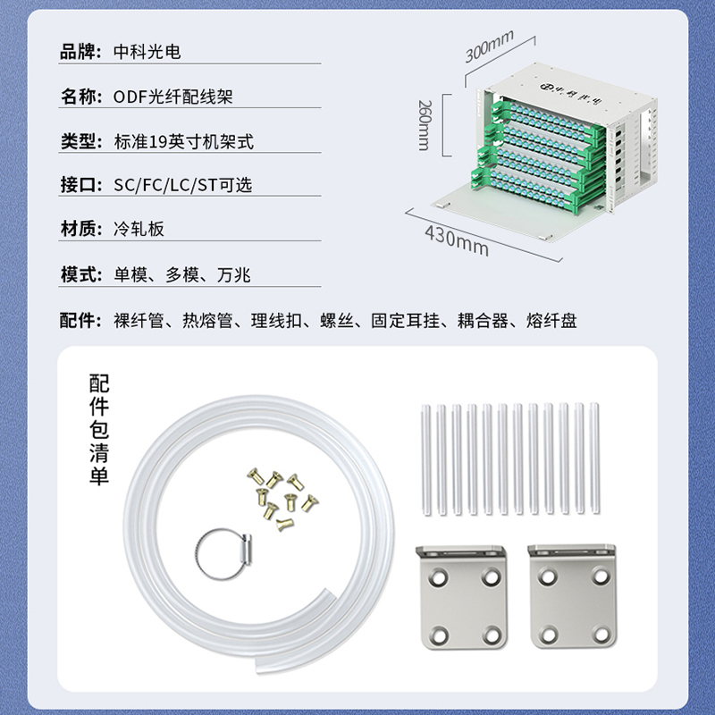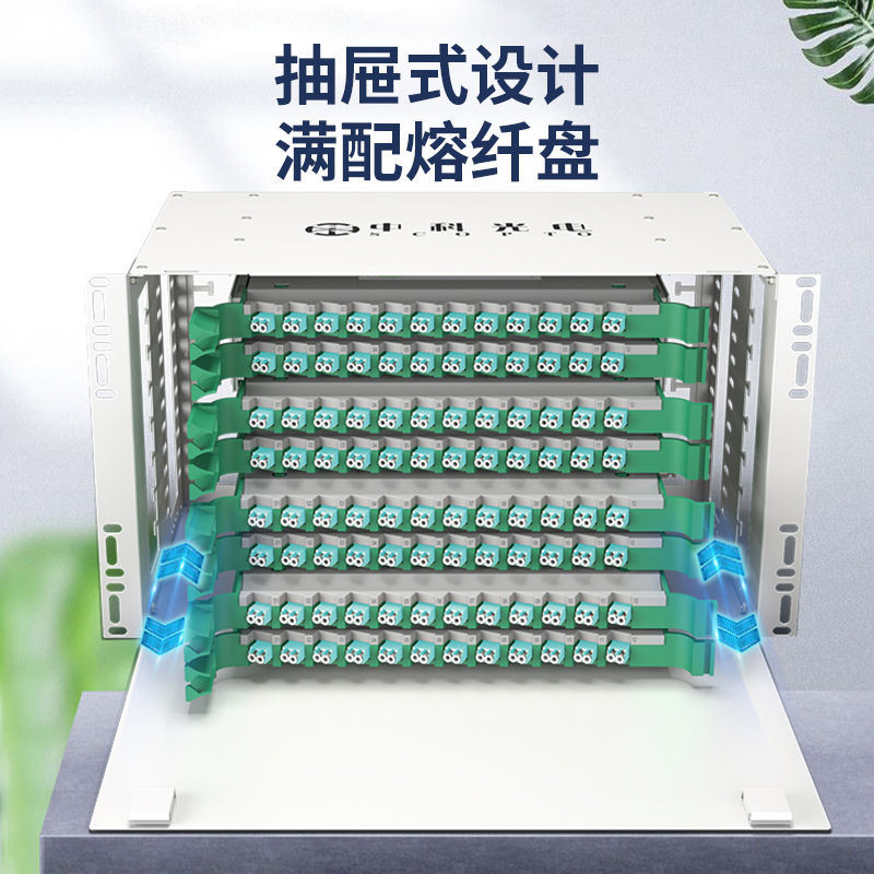 中科光電ZK-ODF-192LC-MM-OM3 192芯ODF光纖配線架LC萬兆多模滿配箱 機架式終端盒子框單元體光纜尾纖熔接盤