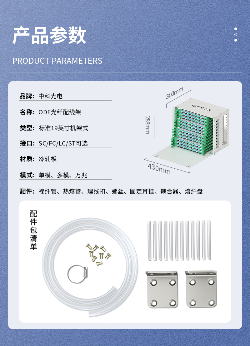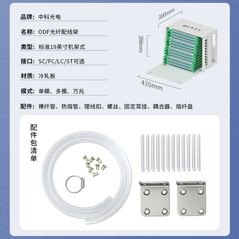 中科光電ZK-ODF-288LC-MM-OM3 288芯ODF光纖配線架LC萬兆多模滿配箱 機架式終端盒子框單元體光纜尾纖熔接盤