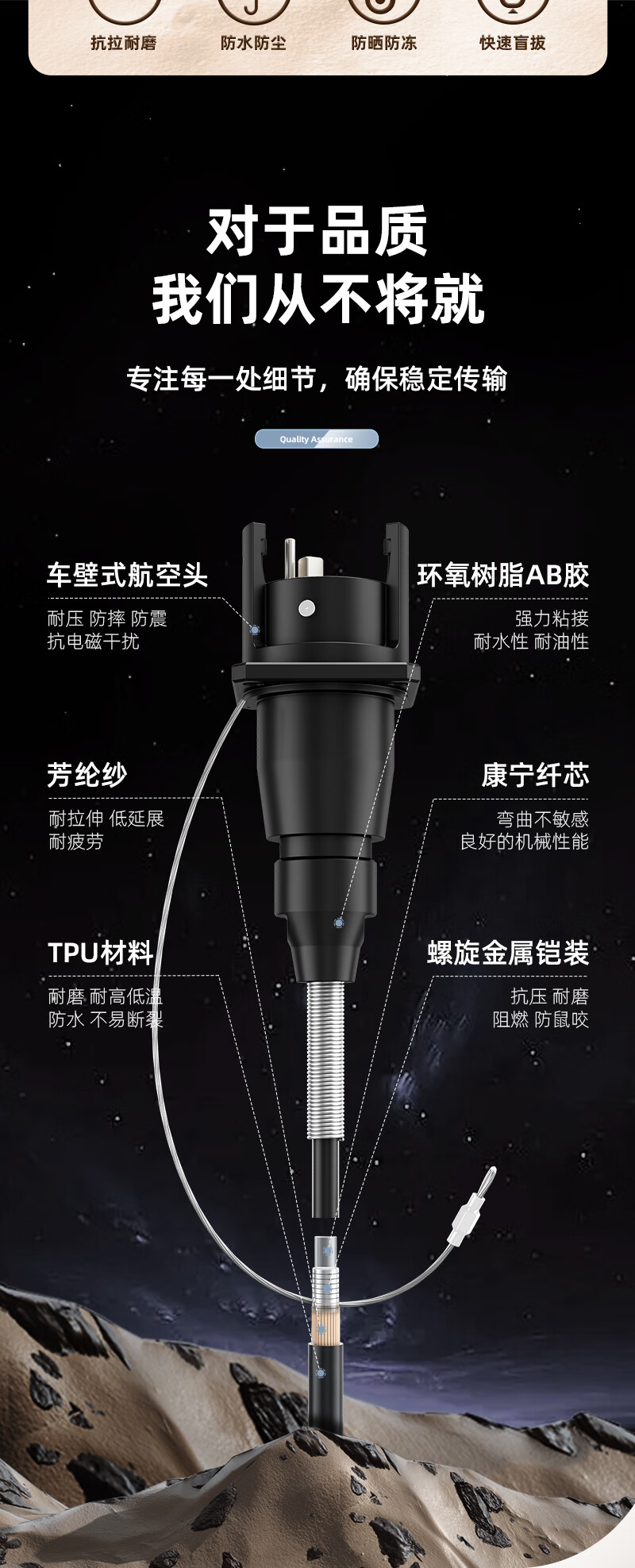 中科光電 室外單模2芯TPU野戰(zhàn)光纜轉(zhuǎn)接線連接器 金屬航空母頭轉(zhuǎn)塑料航空母頭光纖跳線 3米 ZK-2S-JHMSHM3