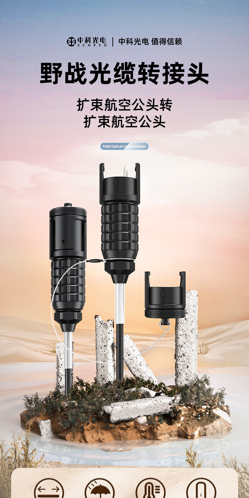 中科光電 室外單模2芯擴(kuò)束野戰(zhàn)光纜轉(zhuǎn)接頭連接器 TBE783透鏡擴(kuò)速公頭轉(zhuǎn)擴(kuò)速公頭光纖跳線 3米 ZK-2S-HKHK3