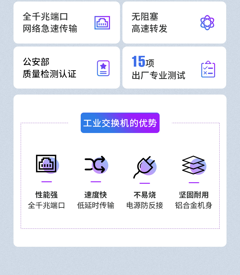 中科光電 工業(yè)級8口千兆交換機(jī) 安防監(jiān)控工業(yè)以太網(wǎng)交換機(jī) 12V/24V/48V供電導(dǎo)軌壁掛式安裝 ZK-7500-15-8GT