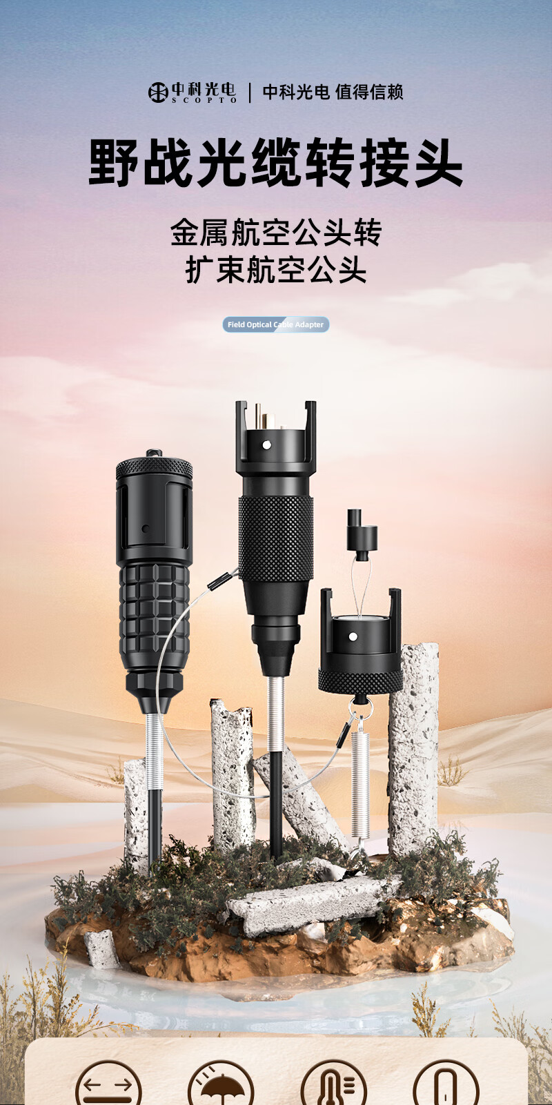 中科光電 室外單模2芯野戰(zhàn)光纜航空頭轉接頭連接器 擴束航空頭轉金屬航空公頭光纖跳線 3米 ZK-2S-HKJHG3