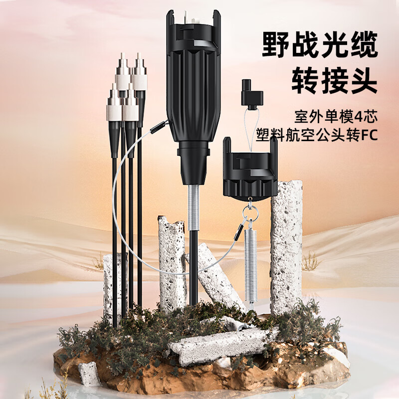 中科光電 室外單模4芯野戰(zhàn)光纜轉(zhuǎn)接頭連接器轉(zhuǎn)接線 航空塑料公頭轉(zhuǎn)FC接頭光纖跳線 3米 ZK-4S-SHGF3