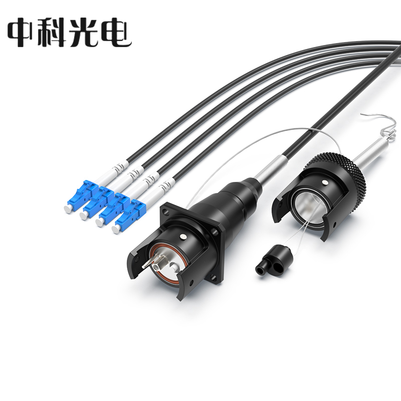 中科光電 室外單模4芯TPU野戰(zhàn)光纜轉(zhuǎn)接線 車壁式金屬航空母頭轉(zhuǎn)LC接頭 防水金屬航空頭-LC 3米 ZK-4S-JHML3