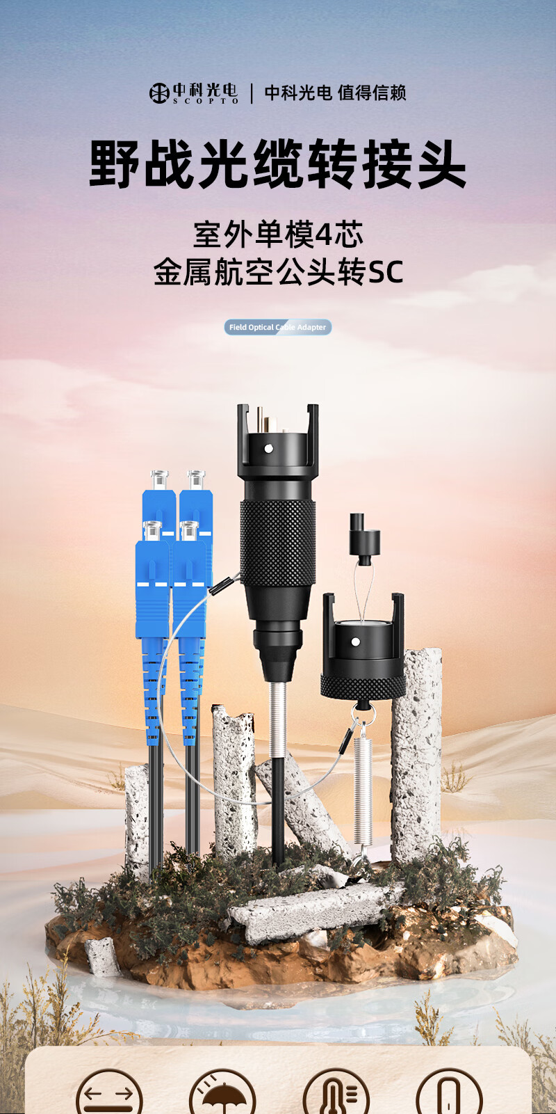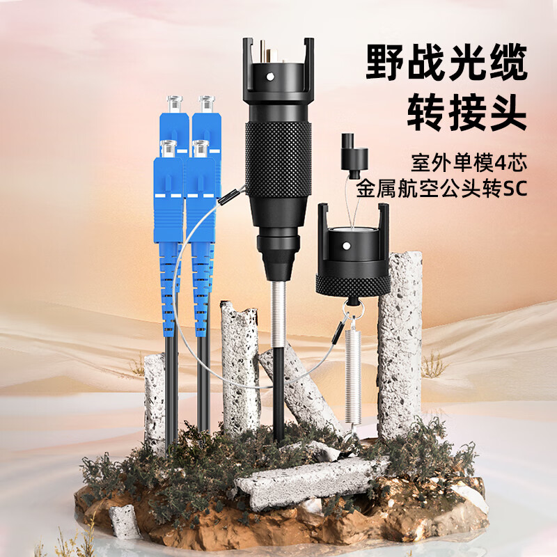 中科光電 室外單模4芯野戰(zhàn)光纜轉(zhuǎn)接頭連接器轉(zhuǎn)接線 航空金屬公頭轉(zhuǎn)SC接頭光纖跳線 3米 ZK-4S-JHGS3