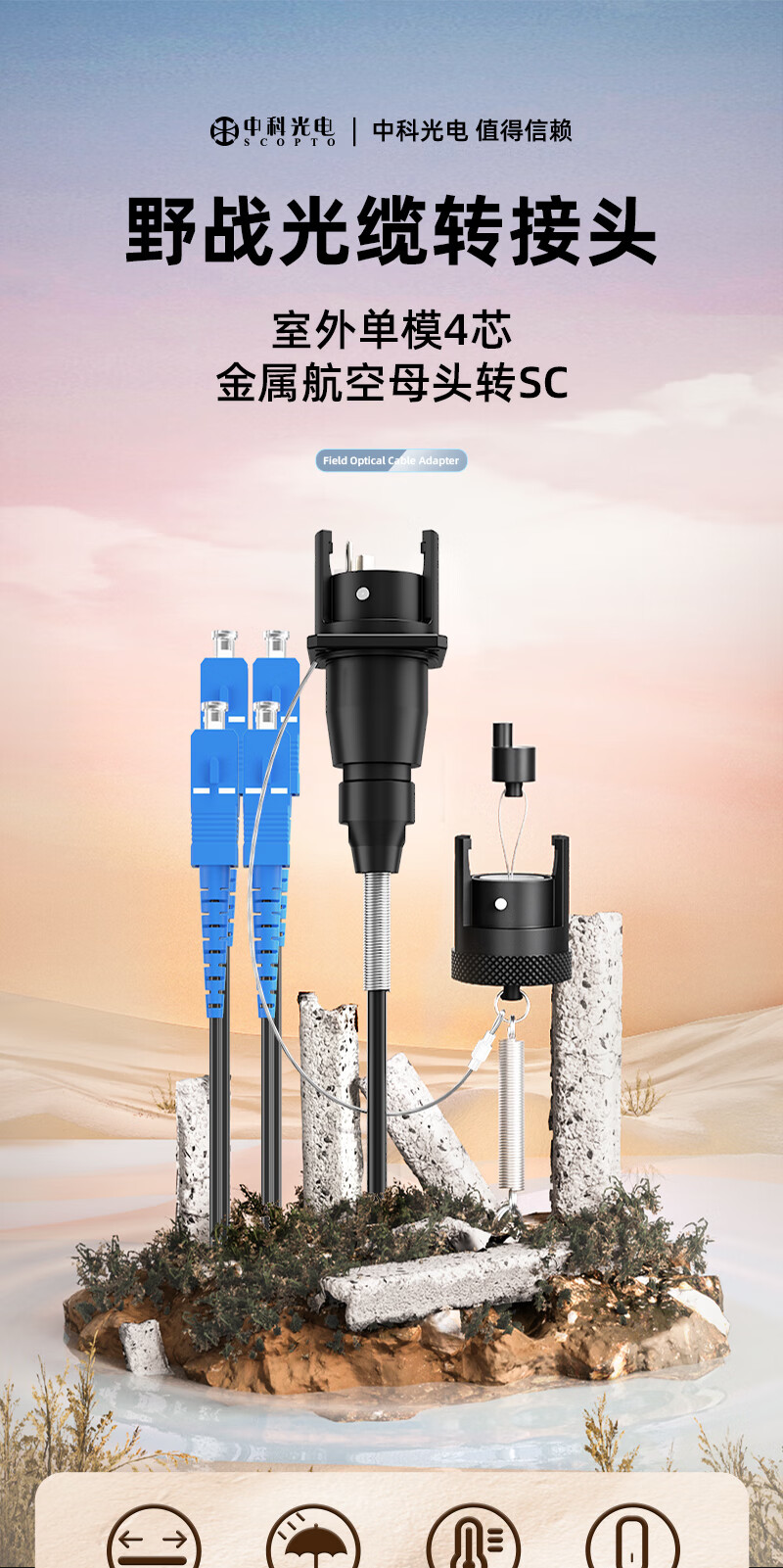 中科光電 室外單模4芯TPU野戰(zhàn)光纜轉(zhuǎn)接線 車壁式金屬航空母頭轉(zhuǎn)SC接頭 防水金屬航空頭-SC 3米 ZK-4S-JHMS3
