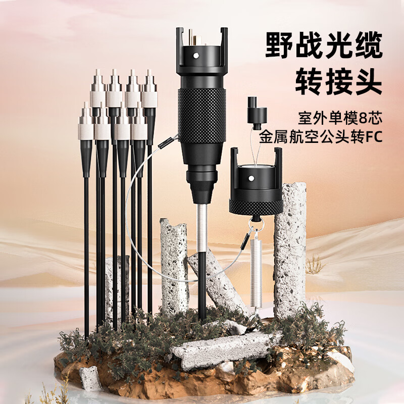 中科光電 室外單模8芯野戰(zhàn)光纜轉(zhuǎn)接頭連接器轉(zhuǎn)接線 航空金屬公頭轉(zhuǎn)FC接頭光纖跳線 3米 ZK-8S-JHGF3