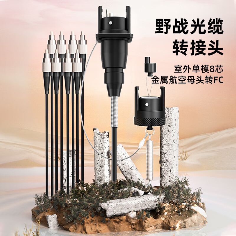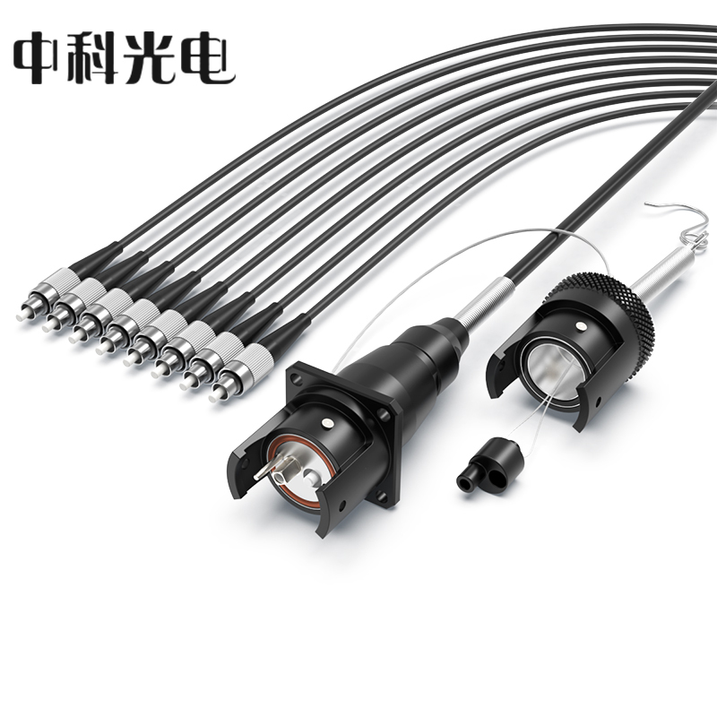 中科光電 室外單模8芯TPU野戰(zhàn)光纜轉(zhuǎn)接線 車壁式金屬航空母頭轉(zhuǎn)FC接頭 防水金屬航空頭-FC 3米 ZK-8S-JHMF3