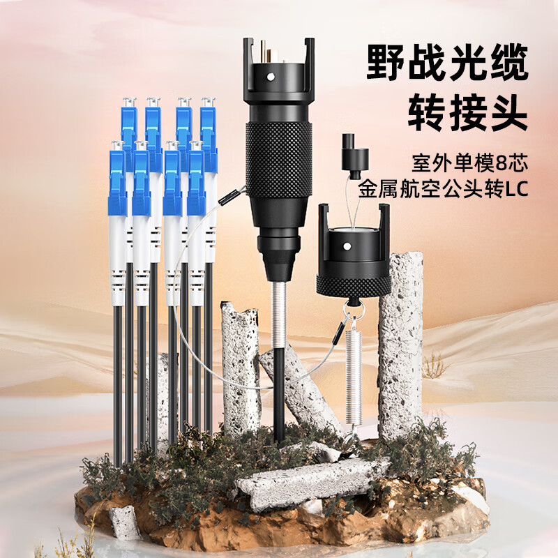 中科光電 室外單模8芯野戰(zhàn)光纜轉(zhuǎn)接頭連接器轉(zhuǎn)接線 航空金屬公頭轉(zhuǎn)LC接頭光纖跳線 3米 ZK-8S-JHGL3