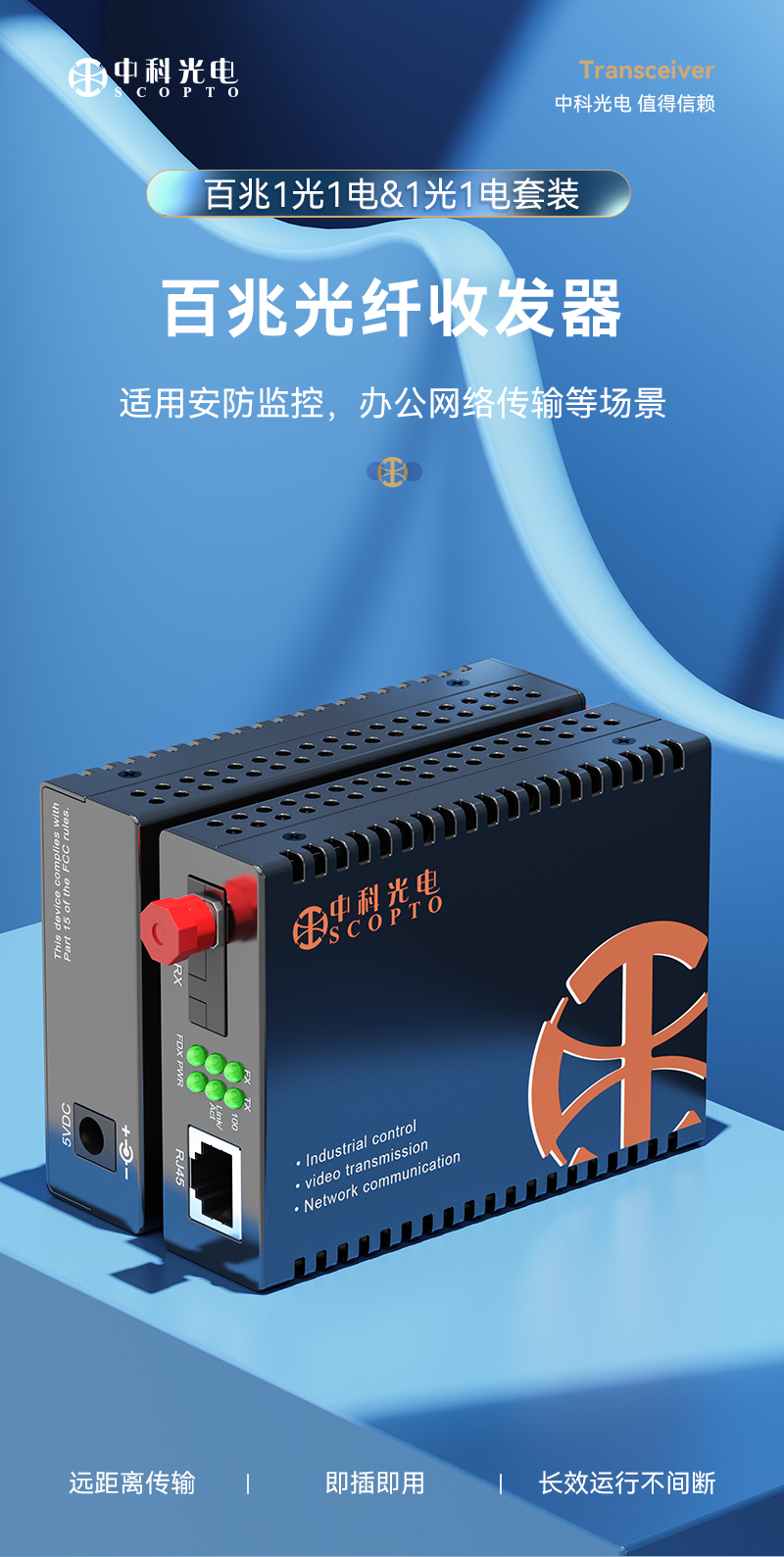 中科光電 百兆單模單纖光纖收發(fā)器 光電轉(zhuǎn)換器 外置電源 FC接口 15公里一臺(tái) ZK-FE-15B/FC