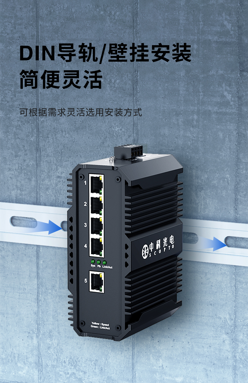 中科光電 POE工業(yè)交換機 5口POE交換機千兆 POE交換機5口 POE供電 工業(yè)級以太網(wǎng)交換機導軌式 ZK-7500-10-5GP