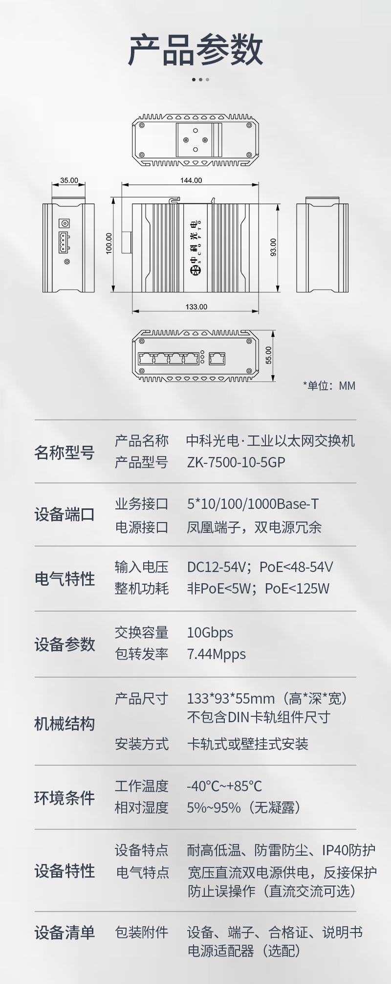 5口千兆 ZK-7500-10-5GP