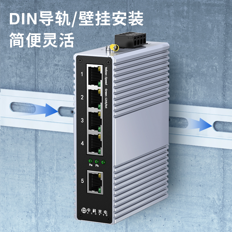 中科光電 POE工業(yè)交換機 5口POE交換機千兆 POE交換機5口POE供電工業(yè)級以太網交換機導軌式 ZK-7000-10-5GP
