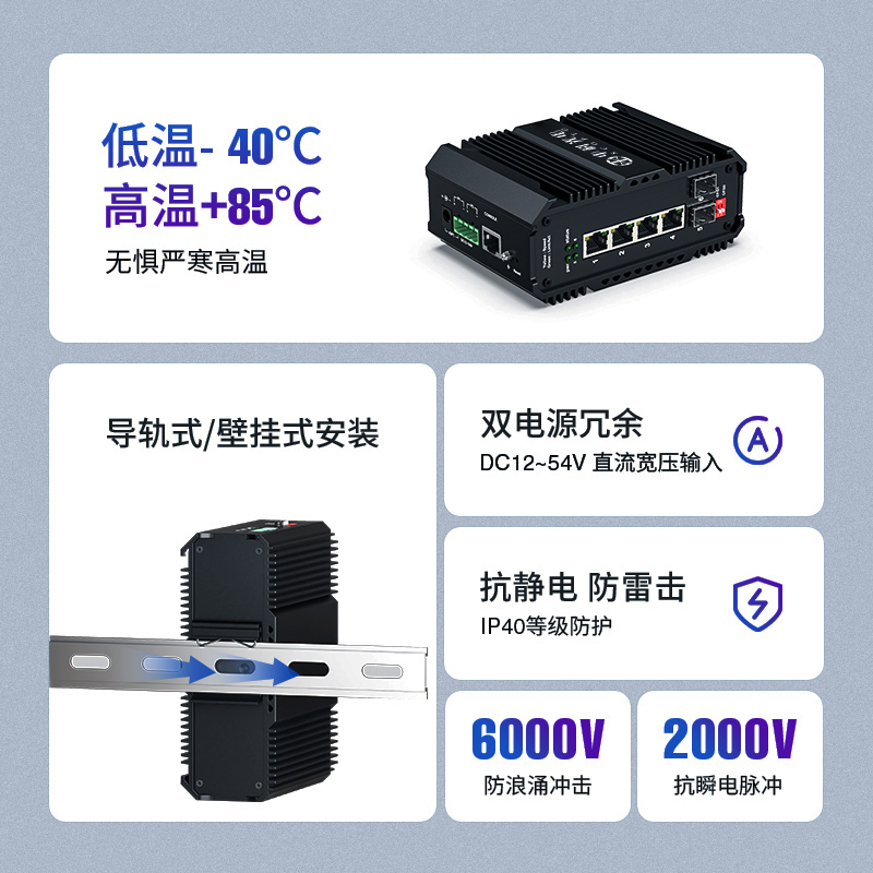 中科光電管理型環(huán)網(wǎng)工業(yè)級以太網(wǎng)交換機 千兆2光4電光纖收發(fā)器轉(zhuǎn)換器DIN導軌式 ZK-7000-23-2GX4GT-SFP