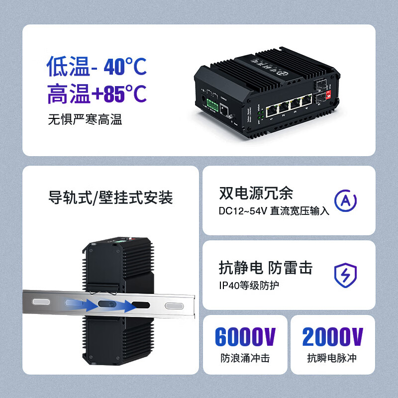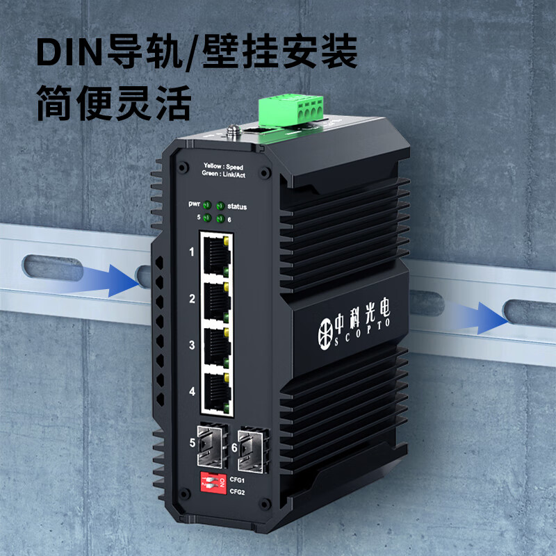 中科光電 工業(yè)級環(huán)網(wǎng)管理型 工業(yè)以太網(wǎng)交換機(jī) 千兆單模雙纖2光4電轉(zhuǎn)換器收發(fā)器 LC接口 ZK-7500-23-2GX4GT-20KM