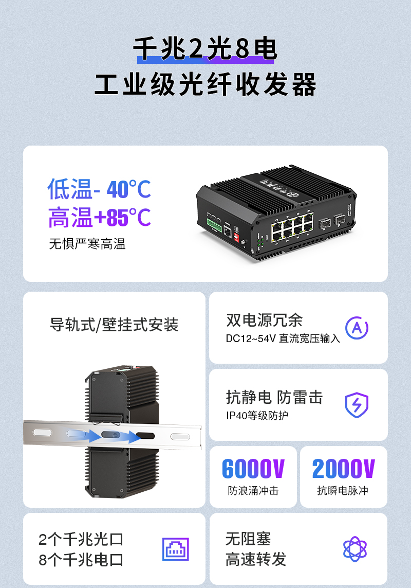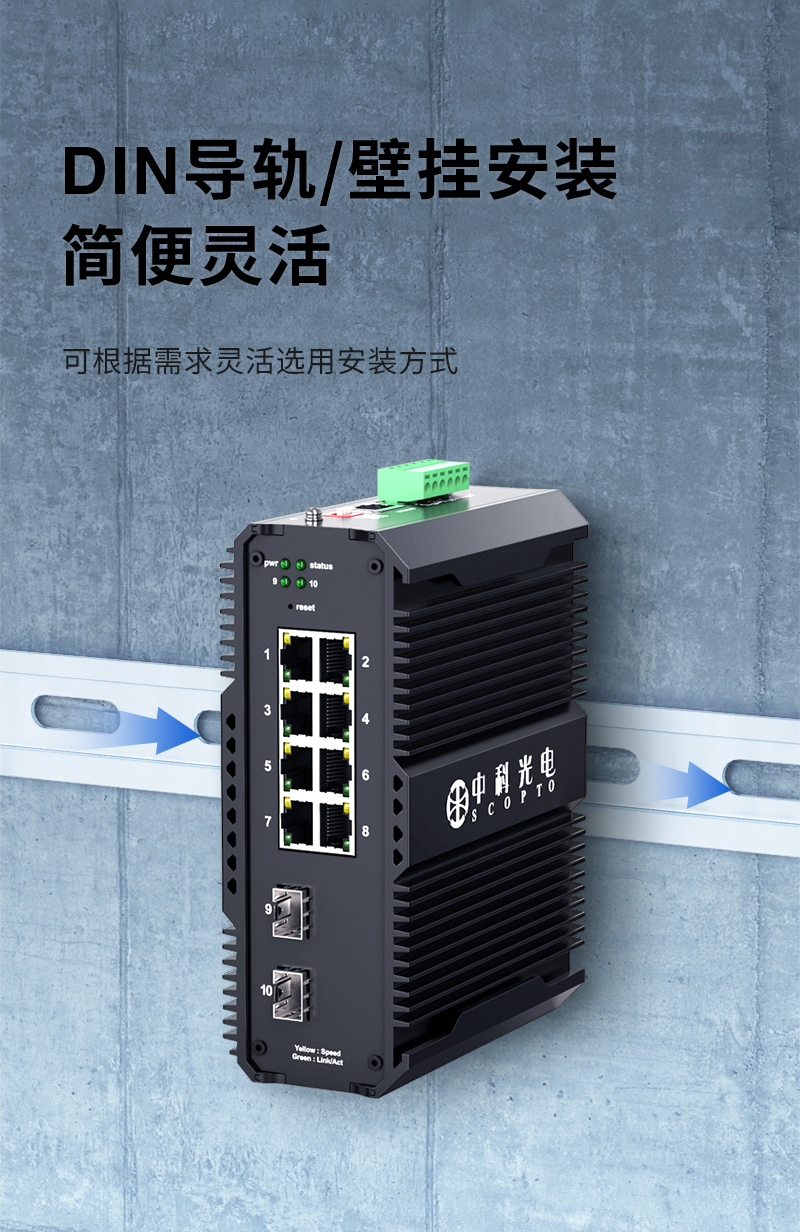 中科光電 環(huán)網(wǎng)管理型光纖交換機工業(yè)級 千兆2光8電 以太網(wǎng)收發(fā)器光電轉(zhuǎn)換器 導(dǎo)軌式 ZK-7500-23-2GX8GT-SFP