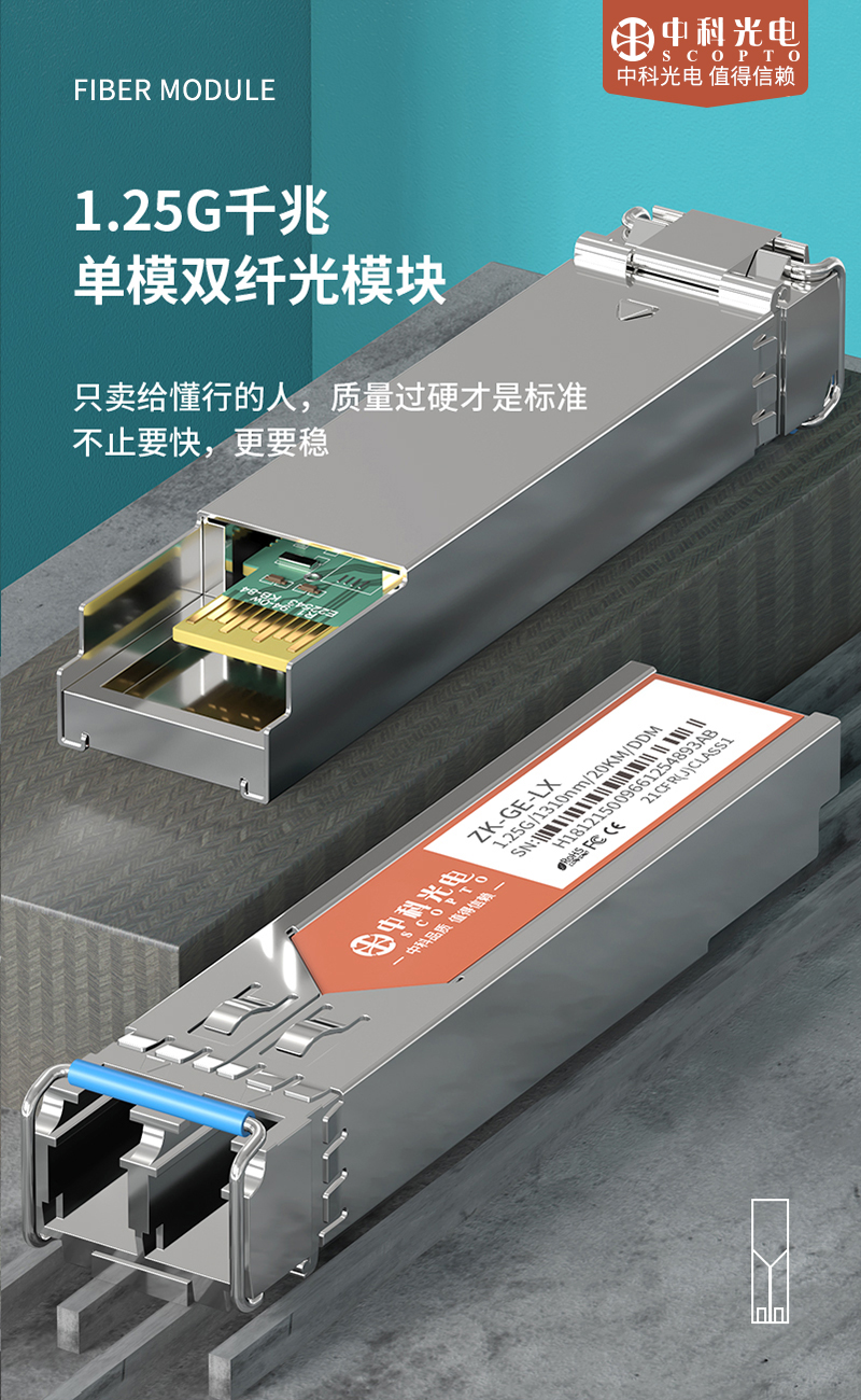 中科光電ZK-GE-LX SFP光模塊 千兆1.25G單模雙纖光纖模塊(1310nm,20KM,LC)光口適用其他品牌下單請(qǐng)備注