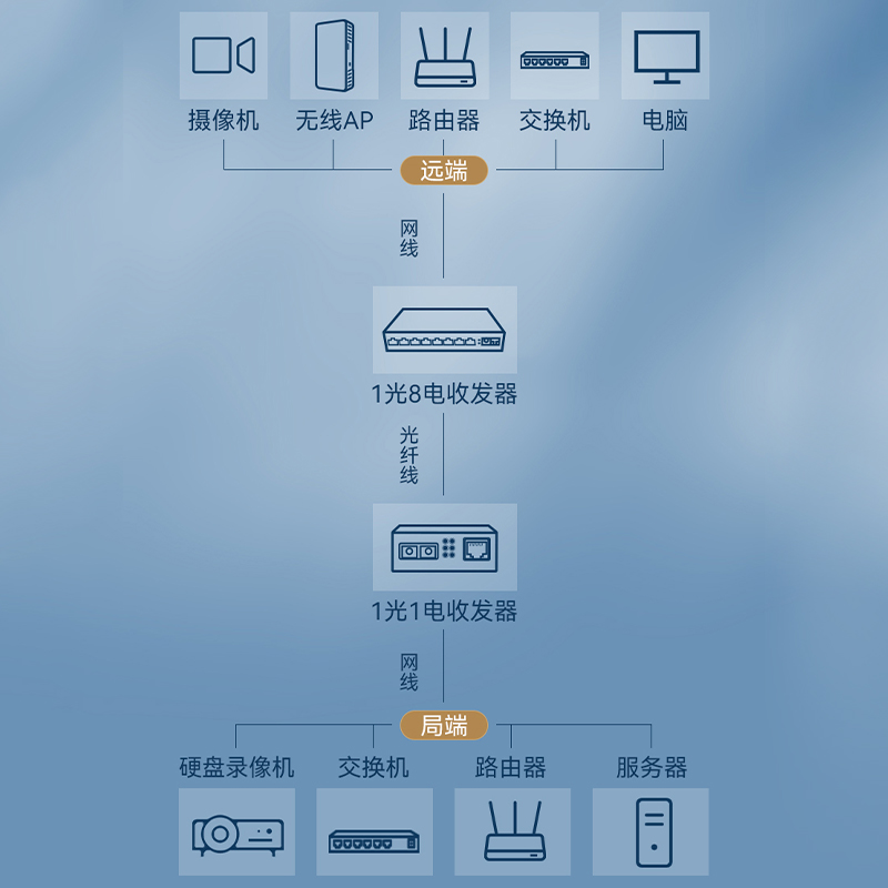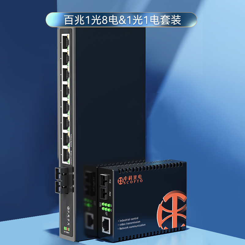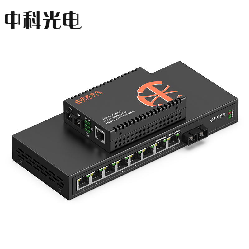 中科光電 百兆多模雙纖光纖收發(fā)器 光電轉(zhuǎn)換器 1光8電+1光1電 雙芯光纖轉(zhuǎn)網(wǎng)線ZK-FE/108-2KM ZK-FE-2KM一對(duì)