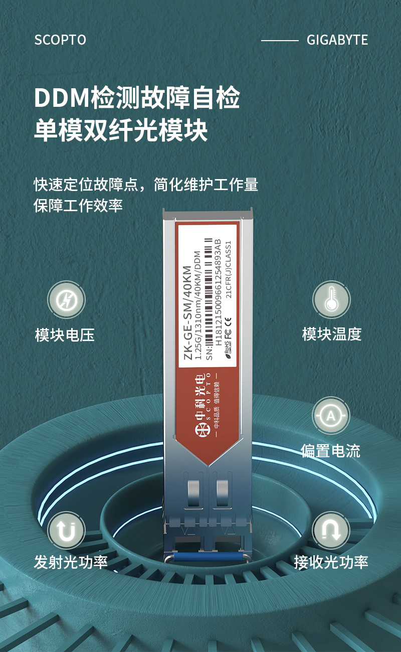 中科光電 千兆光模塊 SFP光纖模塊1.25G千兆單模雙纖 40KM LC接口一只 適用各品牌服務(wù)器交換機(jī)ZK-GE-SM/40KM