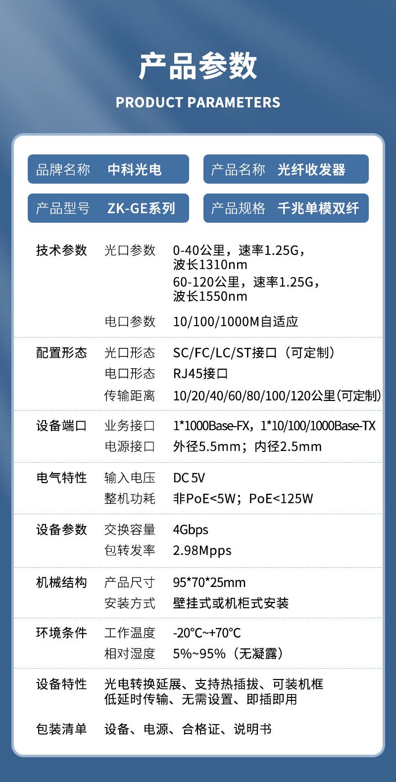 中科光電 千兆單模雙纖光纖收發(fā)器 光電轉(zhuǎn)換器 外置電源 LC接口 10公里一臺 ZK-GE-10KM/SFP
